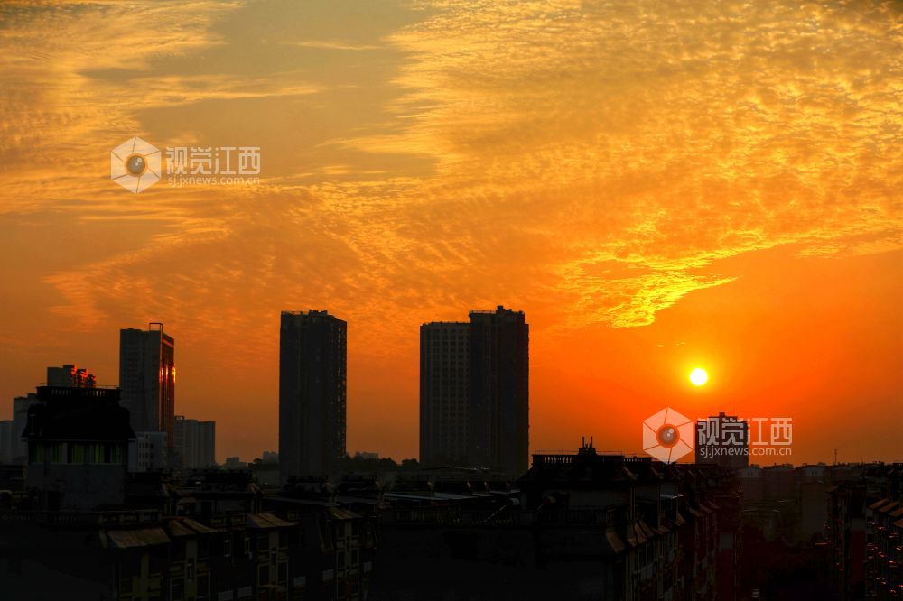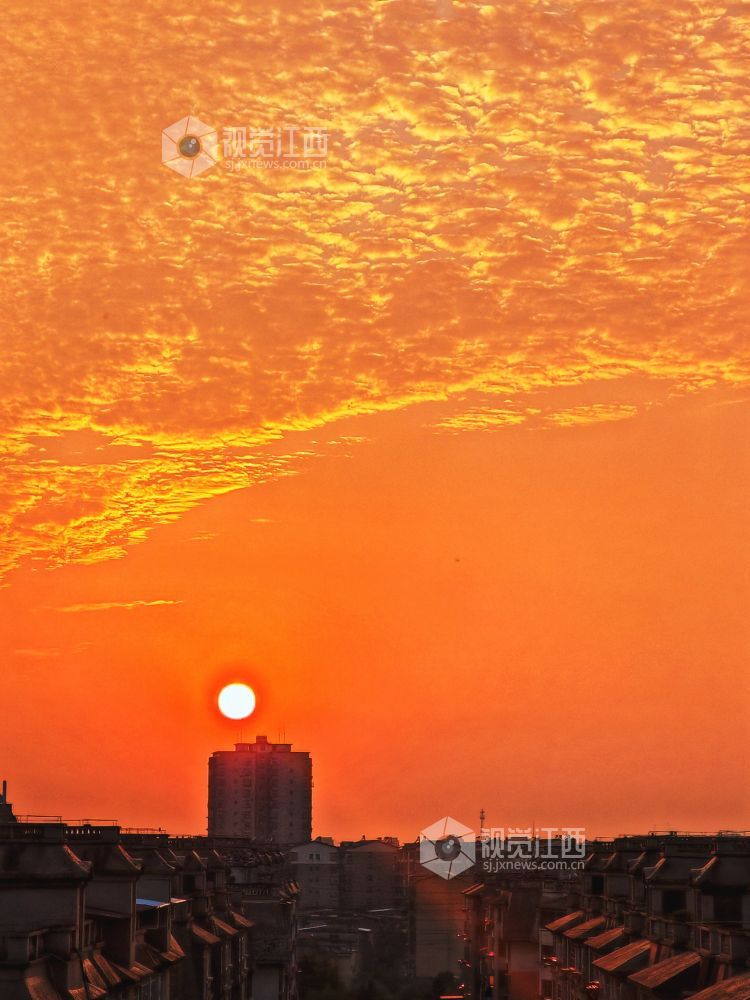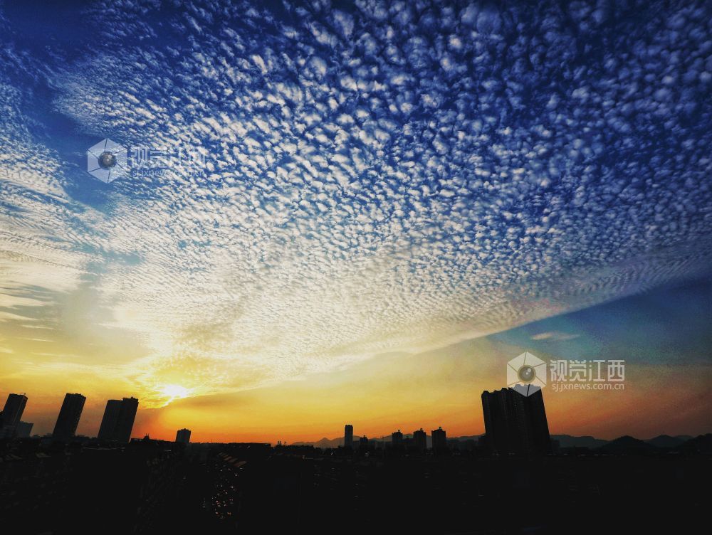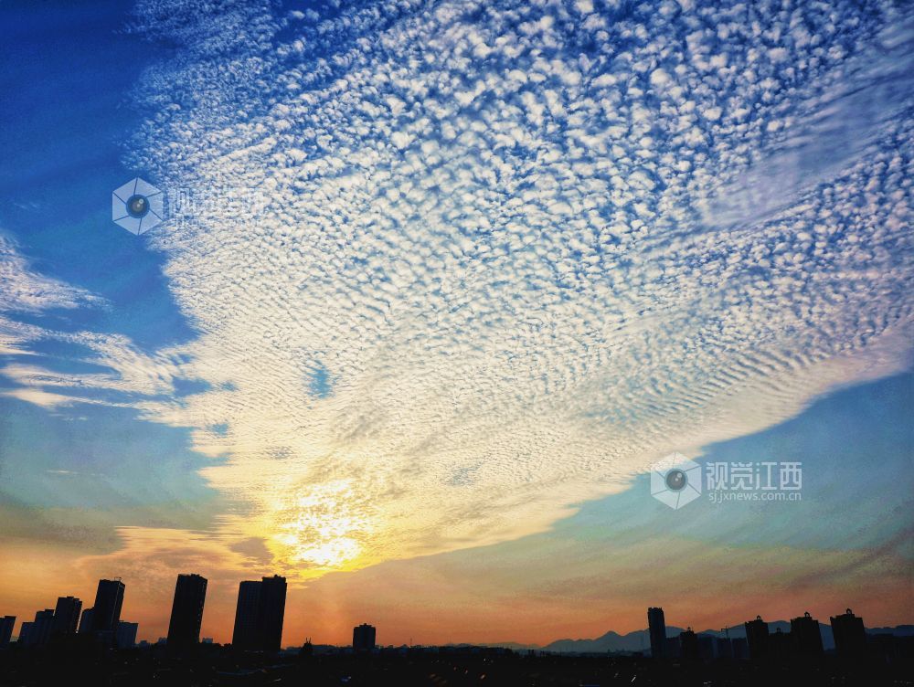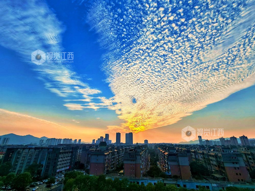江西分宜:“鱼鳞云”邂逅秋日晚霞