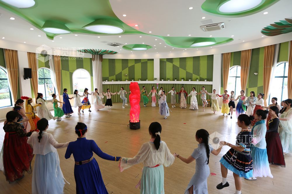 9月27日,江西省上饶市余干县实验幼儿园开展了“童心颂祖国 欢乐贺国庆”主题活动。师生们通过演唱爱国歌曲、跳竹竿舞、为祖国送祝福等方式,表达对伟大祖国的深切热爱和美好祝福。