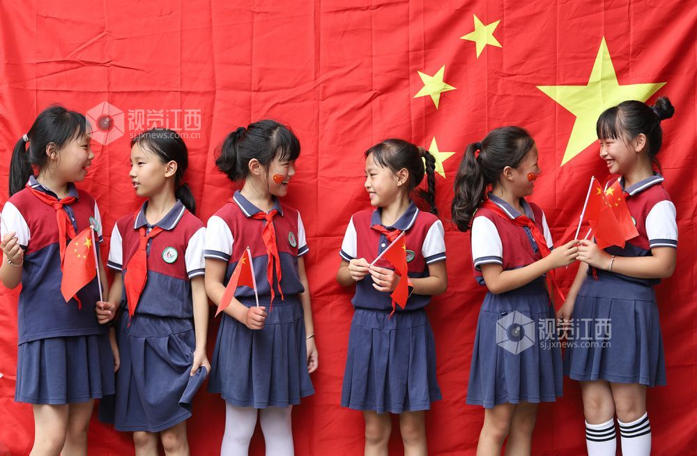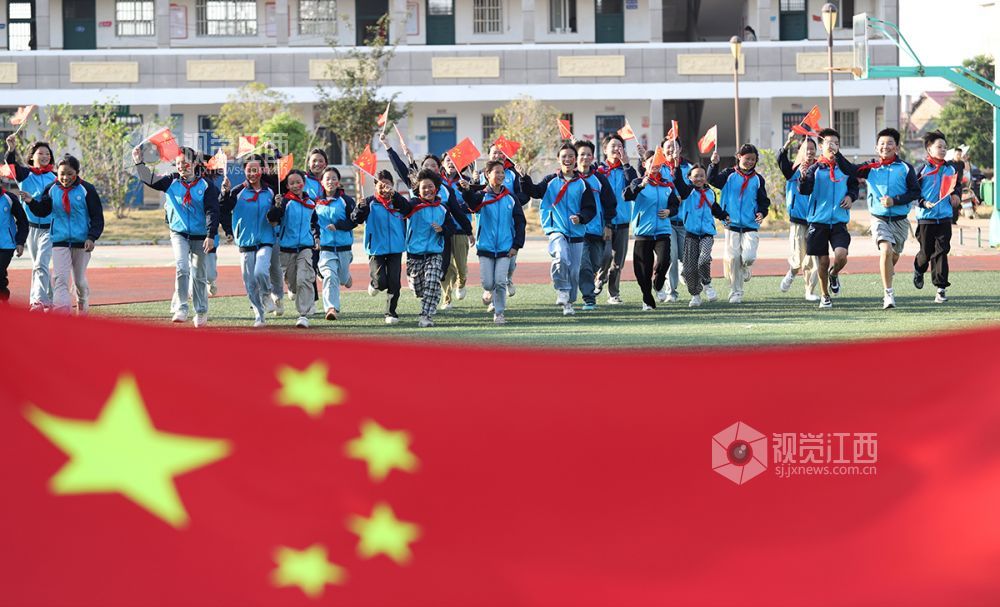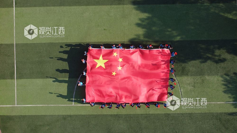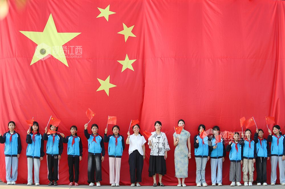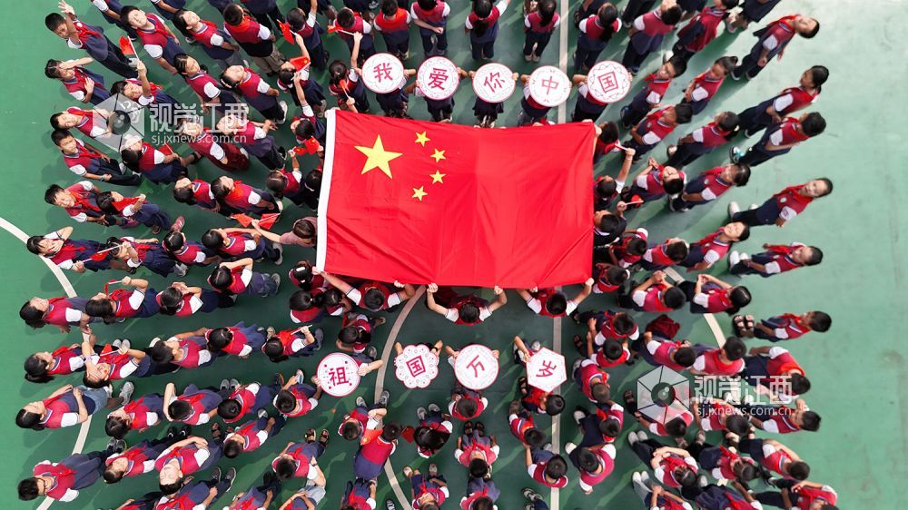 9月27日,江西省上饶市余干县第六小学和四季岗学校的师生们围绕在国旗周围一起合影,迎接国庆节的到来。连日来,余干县各中小学和幼儿园组织学生们开展“我与国旗合影”“我为祖国送祝福”和学唱爱国歌曲等主题教育活动,庆祝中华人民共和国成立75周年,向祖国母亲献上了最诚挚的祝福。
