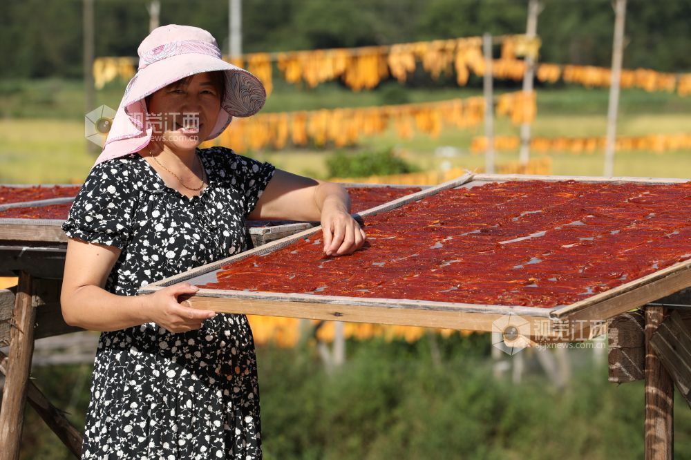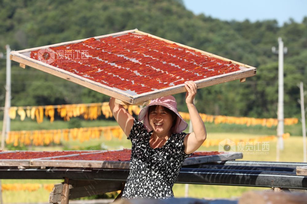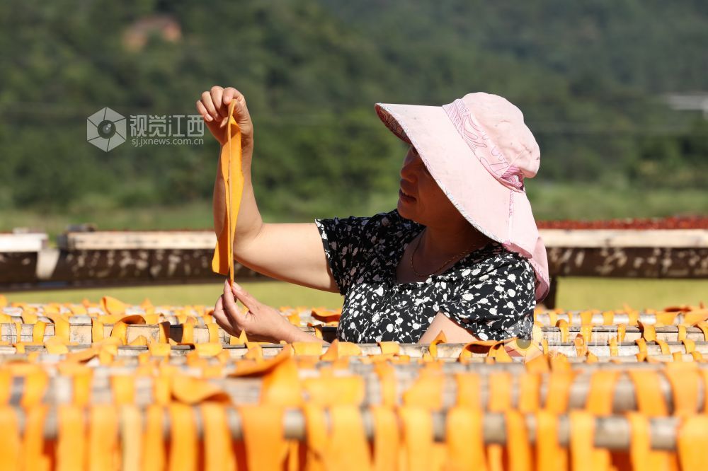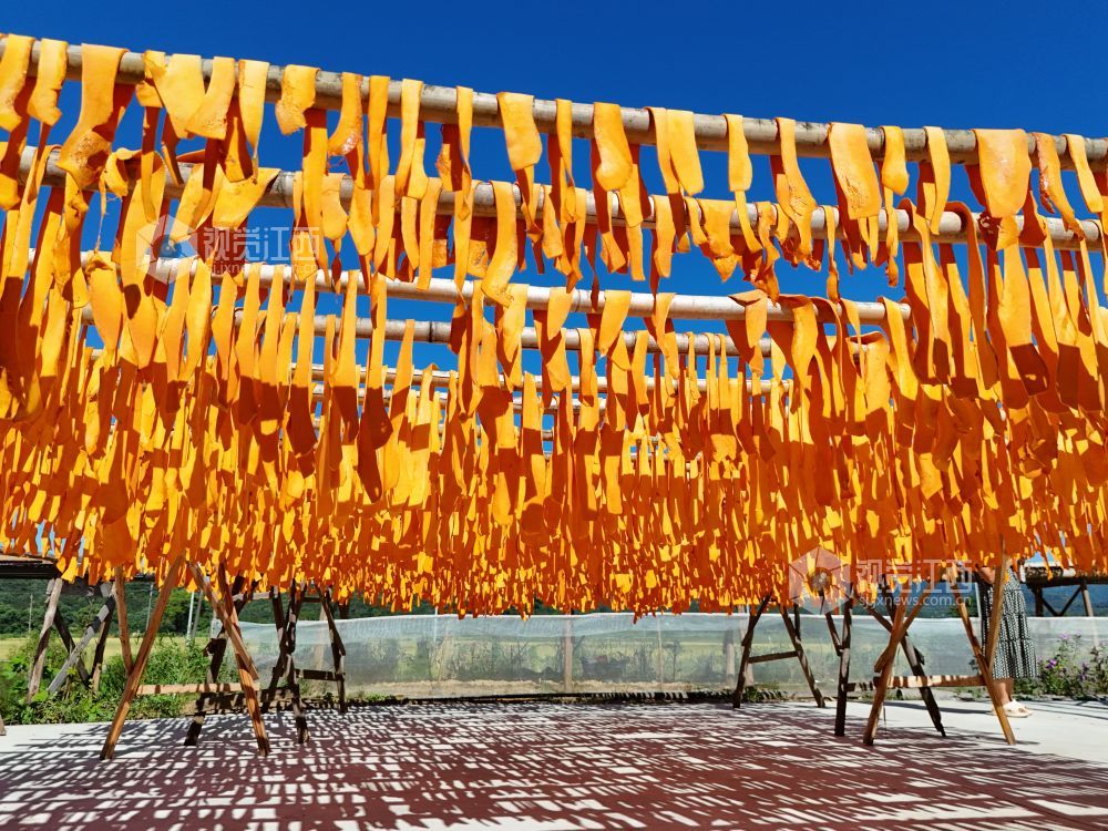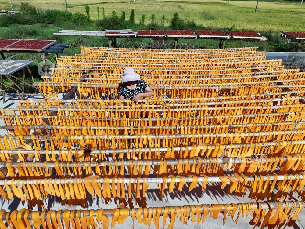 秋高气爽的时节,9月28日,在江西省德兴市张村乡的南岸村,田间地头晾晒的金灿灿的南瓜粿和红彤彤的茄子干,形成了乡村一道靓丽的风景线。