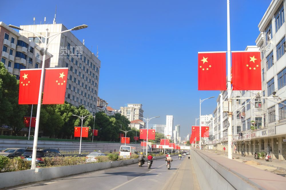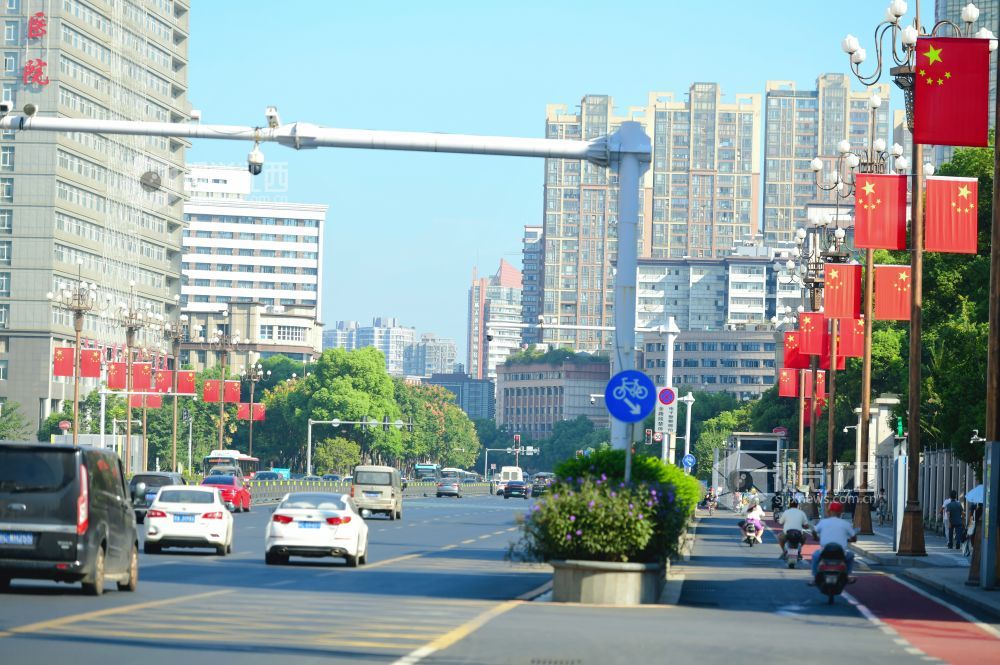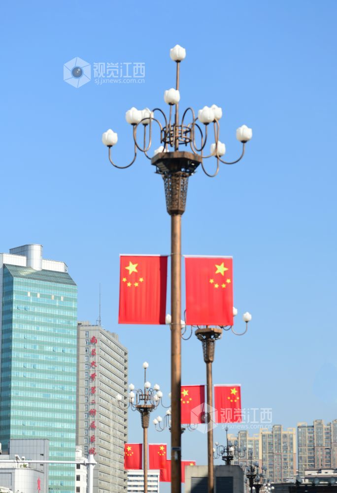 国庆将至,9月30日,江西省南昌市节日氛围浓厚,八一大道、南京西路等主要街道,道路两旁陆续挂上鲜艳的五星红旗,成为一道靓丽的风景线。市民在这座英雄城中,感受到祖国的繁荣昌盛与节日的喜庆热烈。