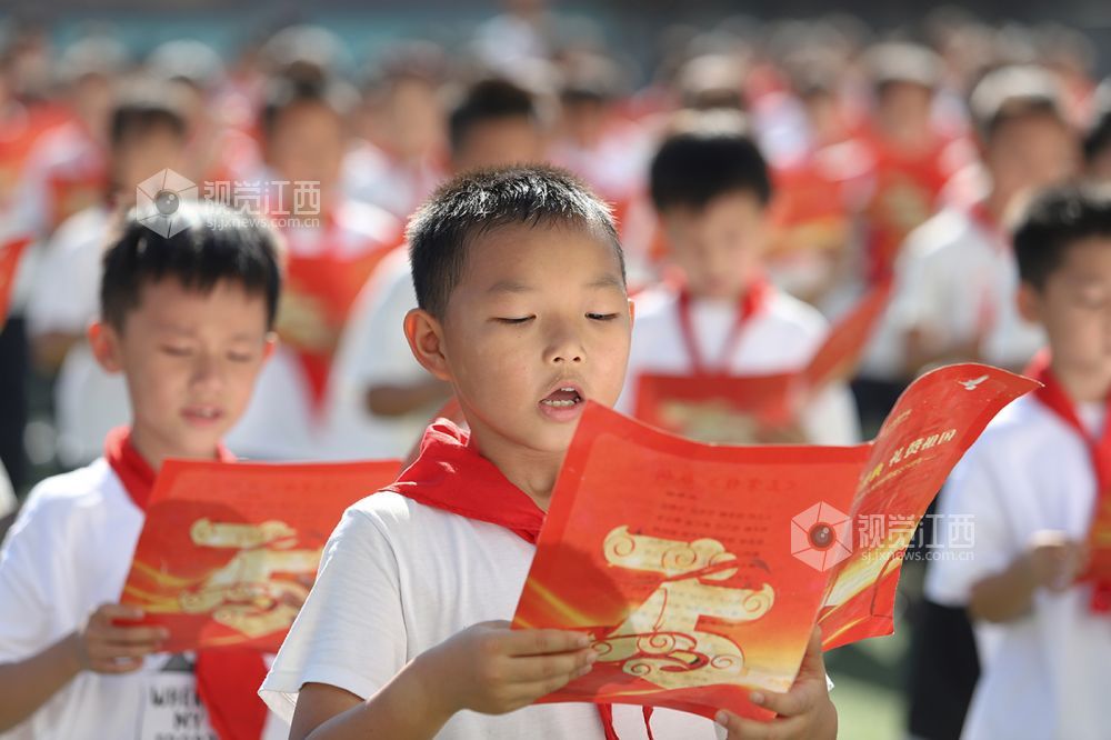 9月30日,江西省余干县海尔希望学校举行“诵读经典,礼赞祖国”暨一年级开笔礼活动,旨在弘扬中华优秀传统文化,帮助学生树立求知明礼、尊师重教意识。