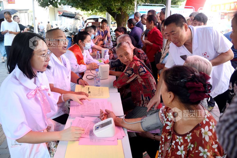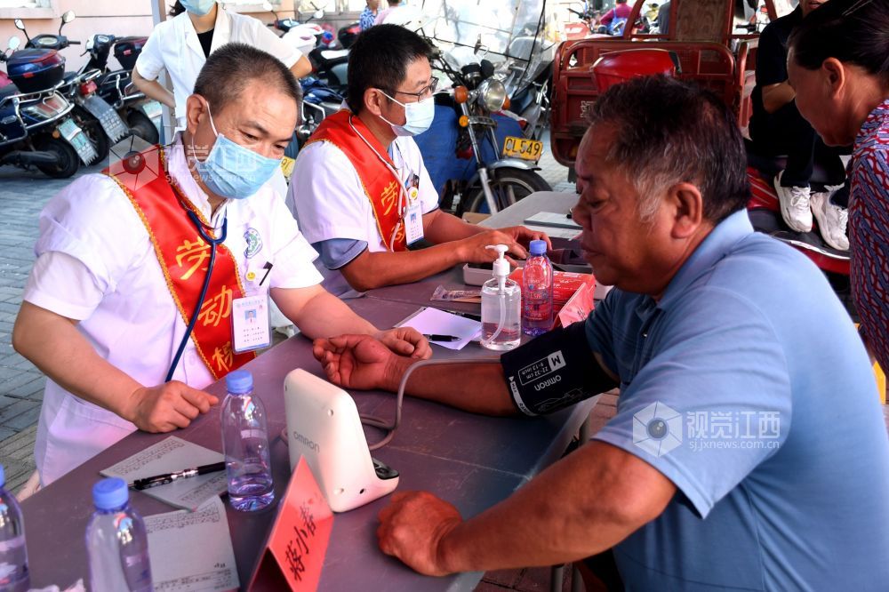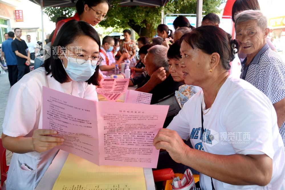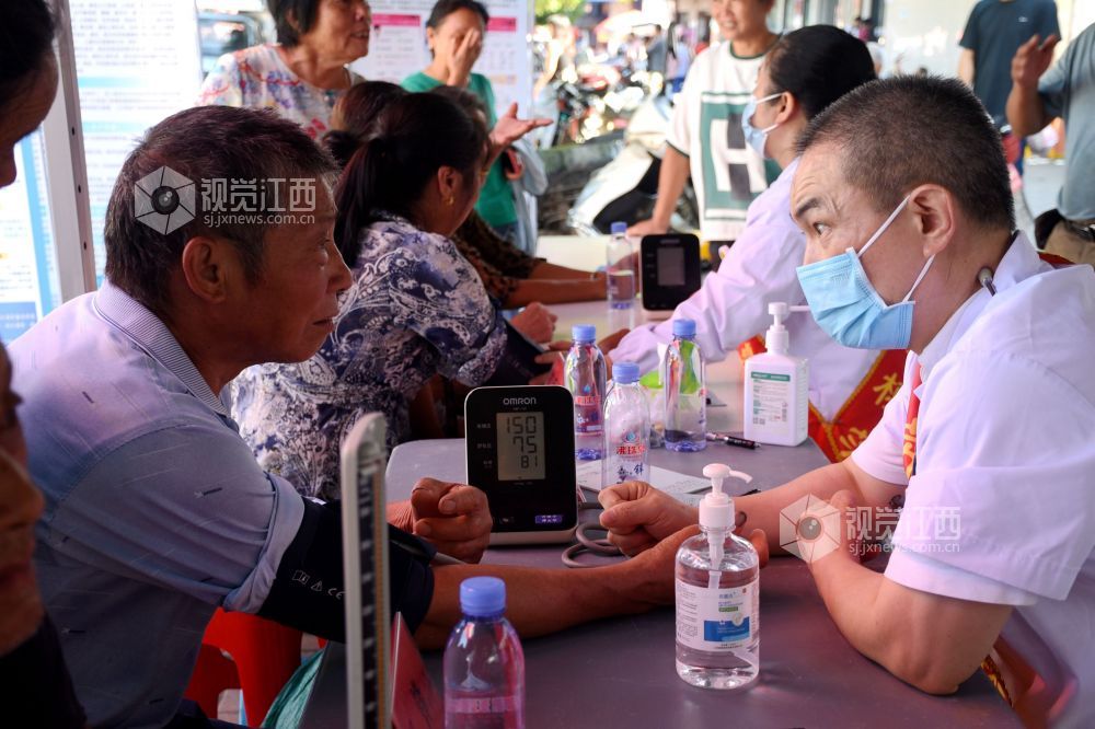 活动现场,南丰县人民医院外科、内科、检验科等专家们为当地的农民群众量血压、问诊、讲解慢性病防治知识,普及健康保健常识,并根据每个人的不同情况给予专业的健康建议和治疗方案。