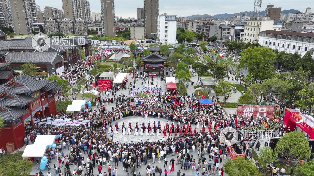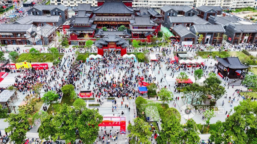 2024年10月1日,江西省瑞昌市赤乌广场庙会人潮涌动、热闹非凡,众多市民游客逛庙会、看表演,欢欢喜喜度国庆。