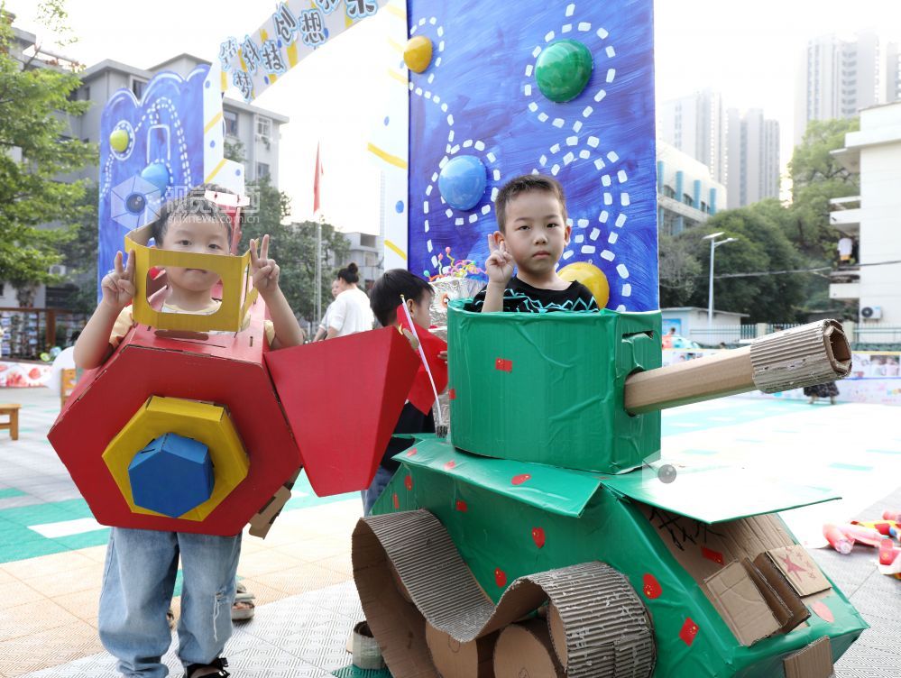 活动现场,摆放了老师和孩子们设计制作的手工作品和绘画,供大家参观游玩,让孩子们近距离感受中华文化的独特魅力,激发孩子们的爱国情怀。