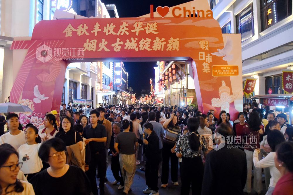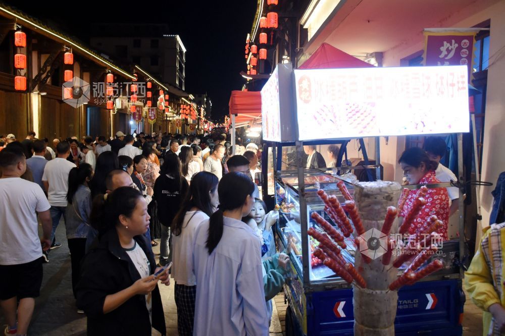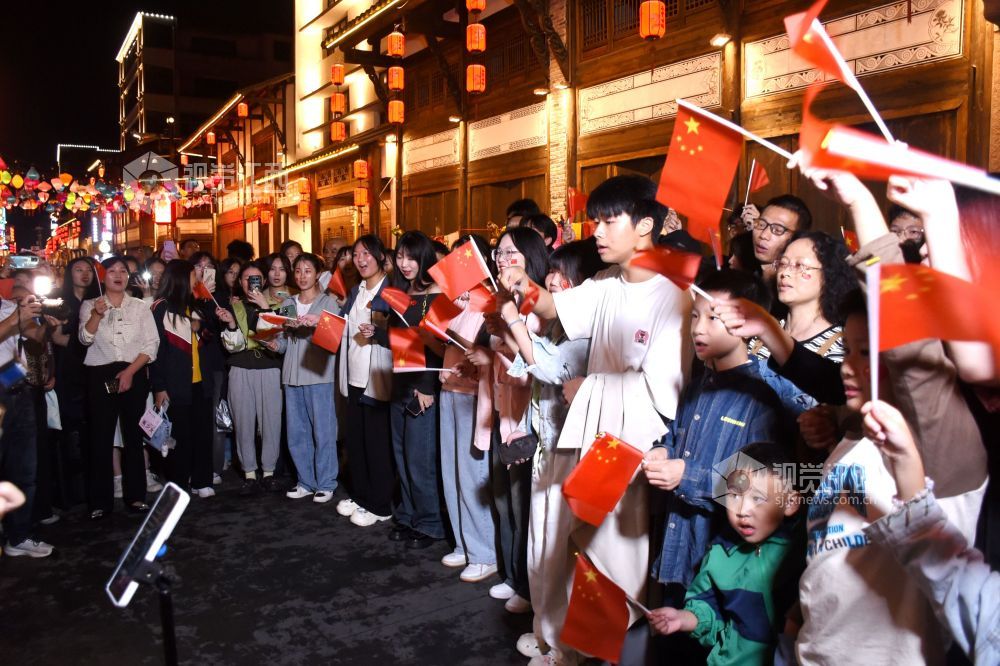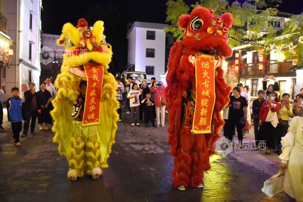 2024年10月1日晚上,江西是抚州市南丰县南门古城各类亮丽灯饰,美味小吃以及精彩的表演活动,吸引了许多市民游客在此相聚游玩,共同欢度国庆。