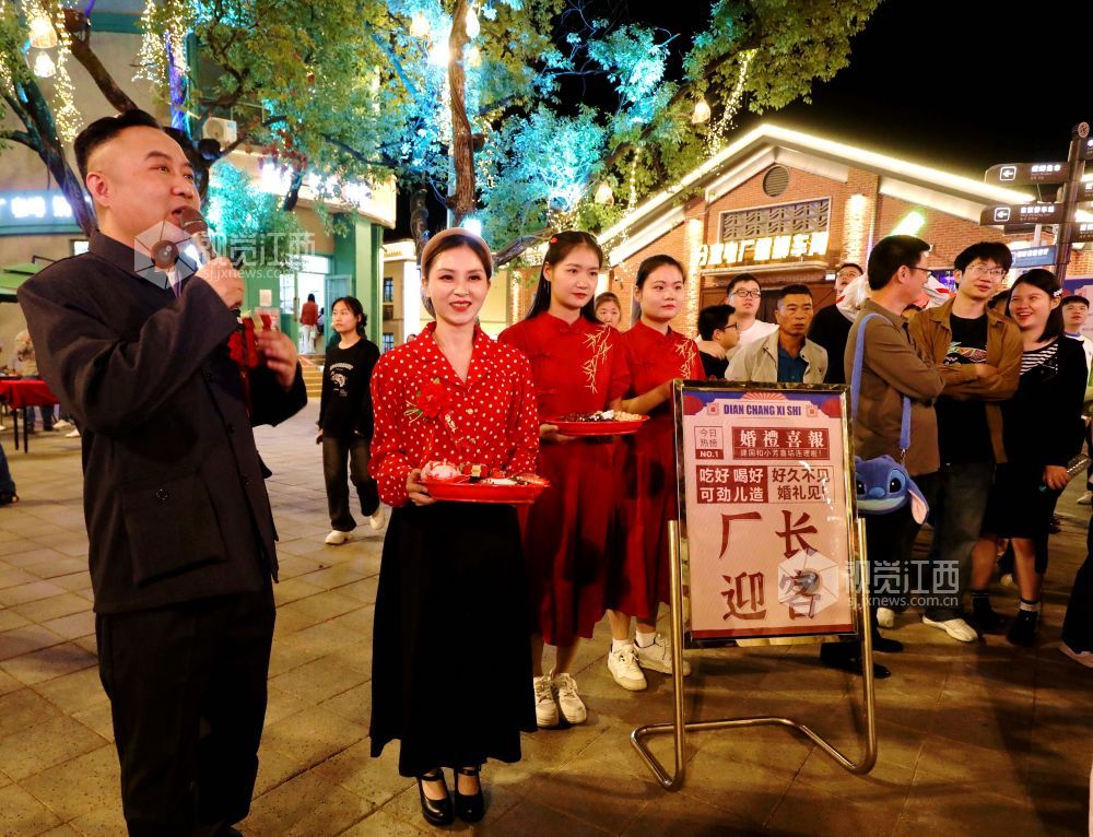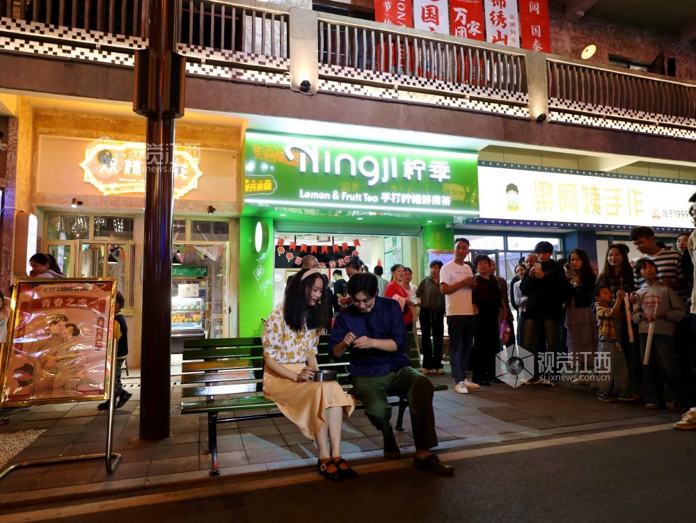 2024年10月3日晚,一部讲述上世纪80年代爱情故事的《电厂喜事》情景剧在江西省分宜县电厂螺蛳特色景区精彩上演。当晚,景区夜市街头色彩斑斓、华灯绽放,烟火气升腾,不少市民、游客驻足观看,与演员现场互动,一起助推国庆假期的文化生活,助力当地高质量发展夜间经济。