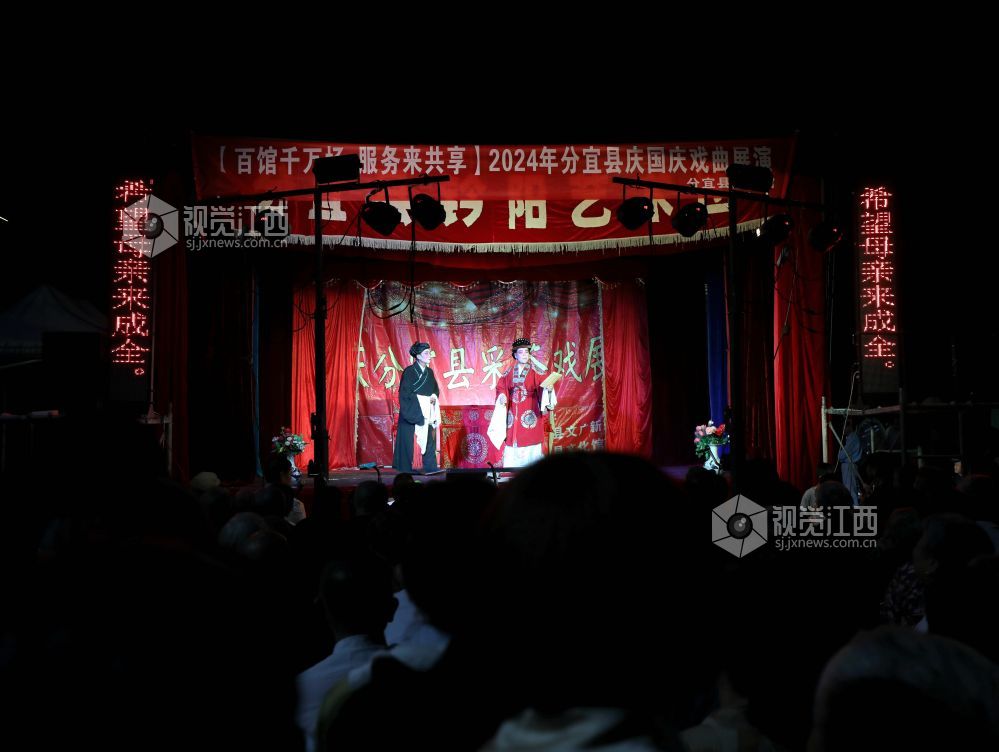 2024年10月5日晚,江西省分宜县钤阳艺术团在当地天工广场精彩上演地方采茶戏《飘带记》。当晚,艺术团的草根演员们用通俗易懂的方言、惟妙惟肖的演技,将浓郁的乡土气息的剧情演绎得淋漓尽致,吸引众多市民驻足观看,让大家在家门口享受国庆假期里丰盛的文化大餐,近距离感受地方戏曲的魅力。