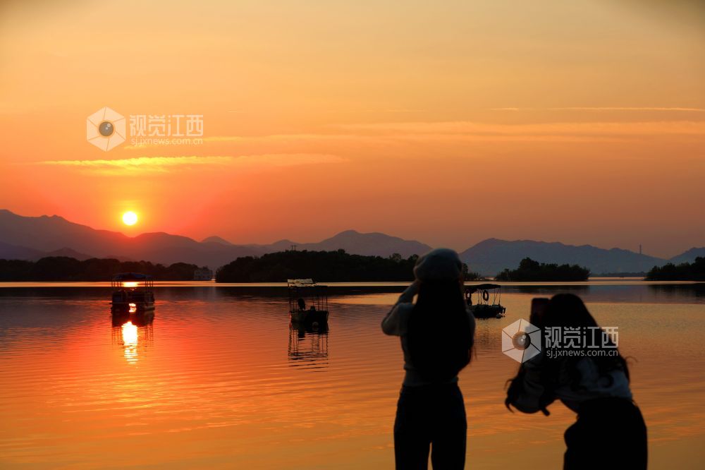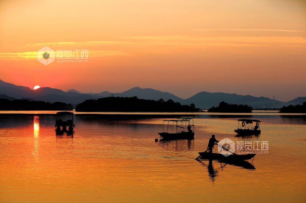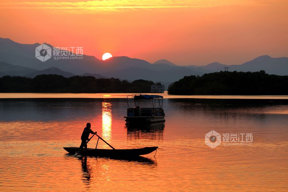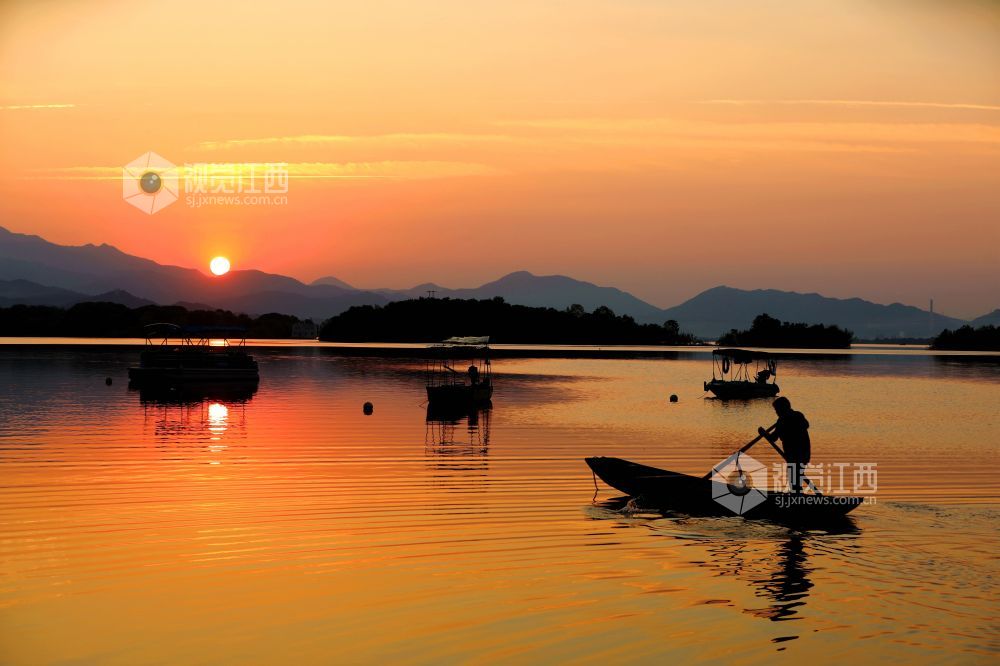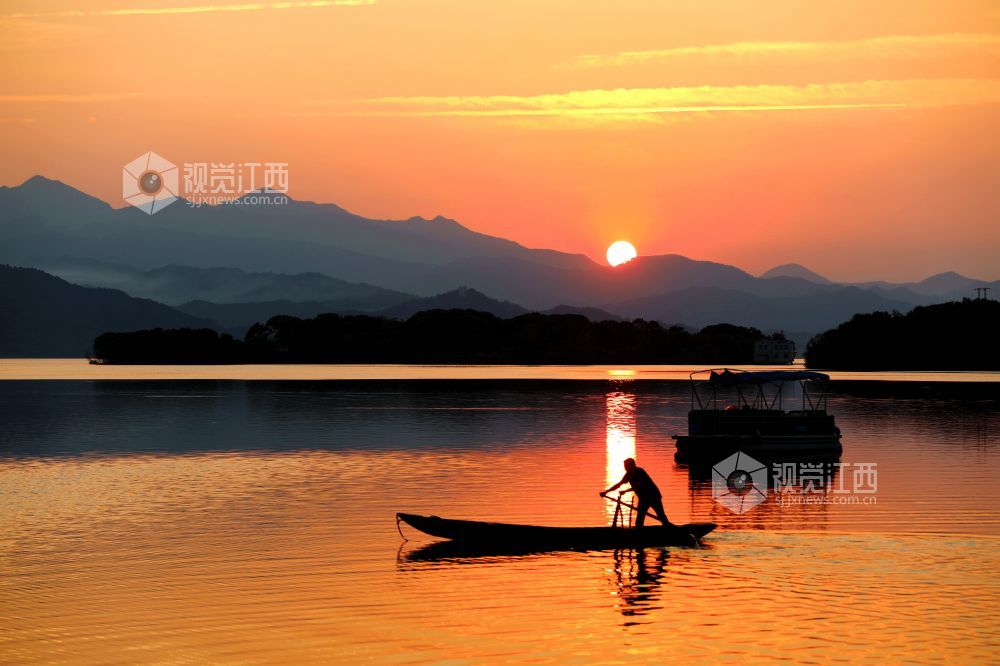 落日余晖醉晚霞,一抹夕阳美如画。2024年10月6日傍晚,江西省分宜县钤阳湖上空呈现绚丽晚霞美景。当日,瞬息万变的霞光与湖水、渔民、小舟、山峦等交相辉映,成为当地一道靓丽的风景。