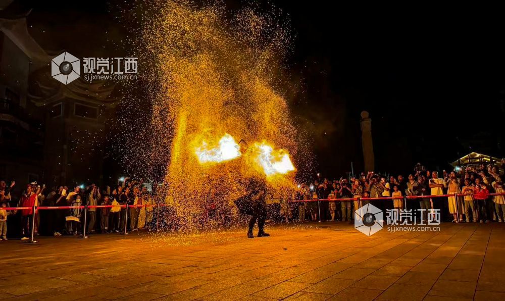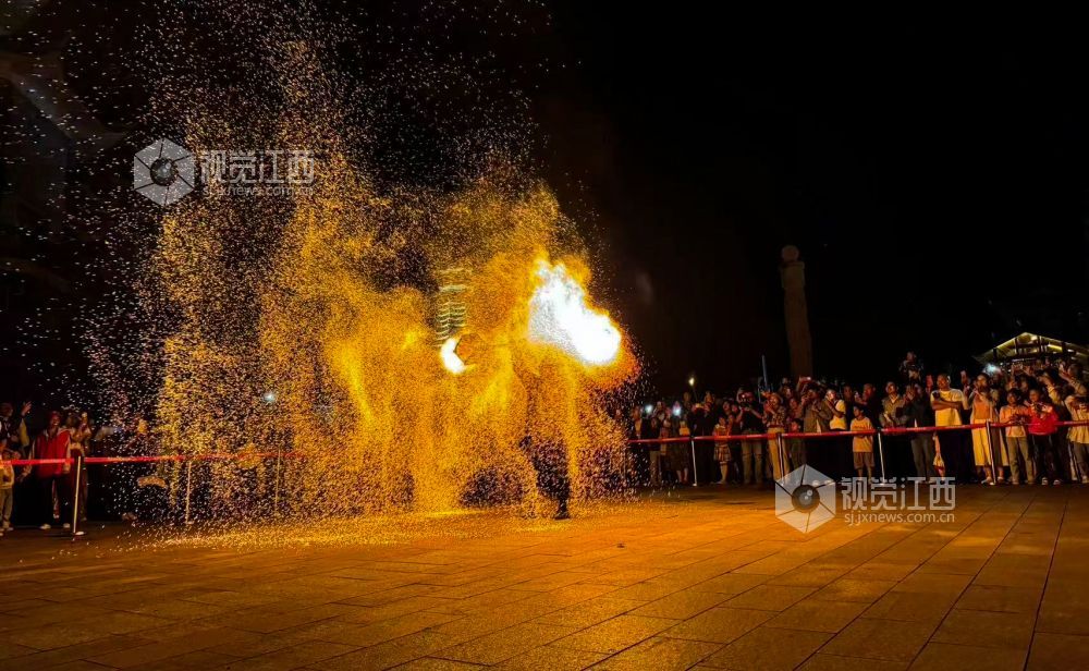 10月3日,江西省峡江县金坪风情园多彩民俗、非遗火壶、彝迪篝火音乐等颠覆传统的表演形式,让游客沉浸式领略多彩民族的独特魅力。