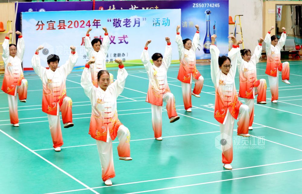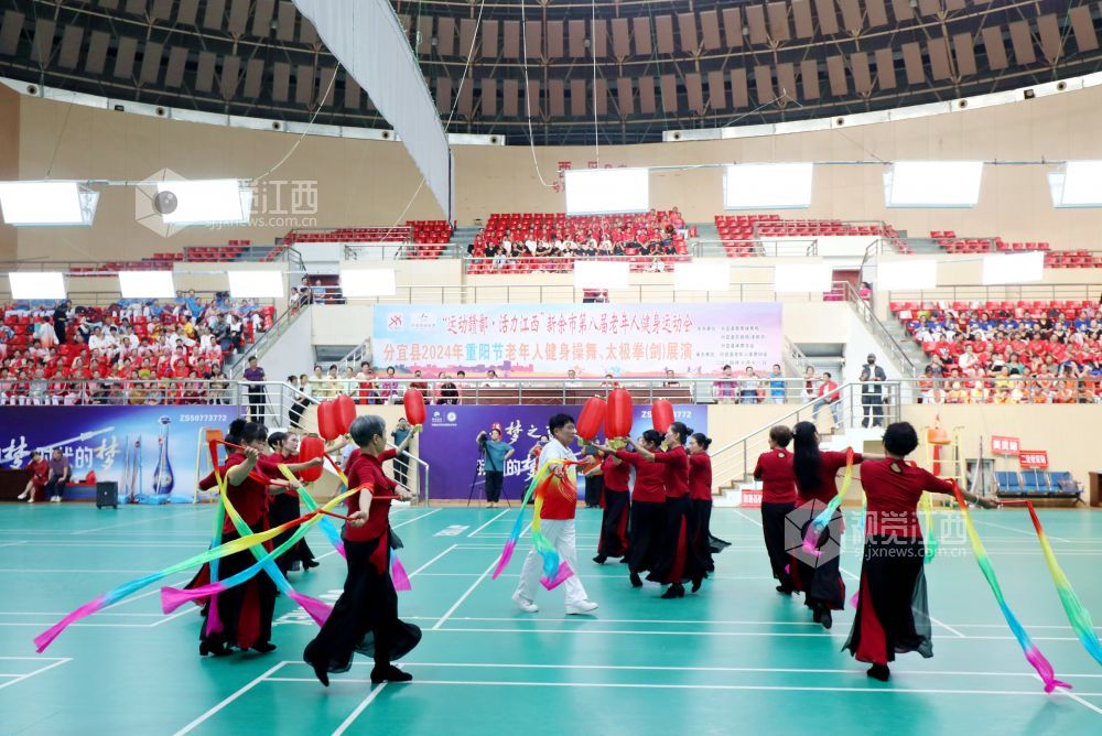 2024年10月11日,江西省分宜县体育馆举办“运动赣鄱 活力江西”老年人健身操舞展演活动,共同庆祝重阳节。活动中,来自全县24支健身队伴随充满激情的旋律,将广场舞、扇子舞、柔力球、太极等舞蹈展现得淋漓尽致,充分享受运动的快乐。