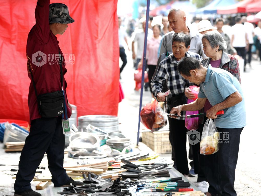 2024年10月13日,江西省分宜县高岚乡举办民间物资交流会,来自当地的商家及周边十里八乡的乡亲们如约而至,纷纷前来“赶大集”,现场“烟火气”满满。