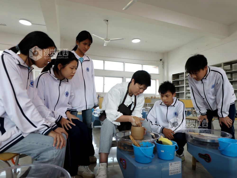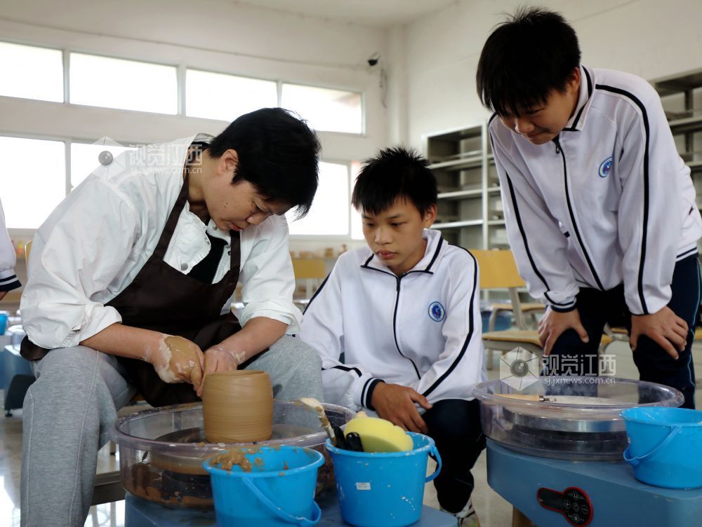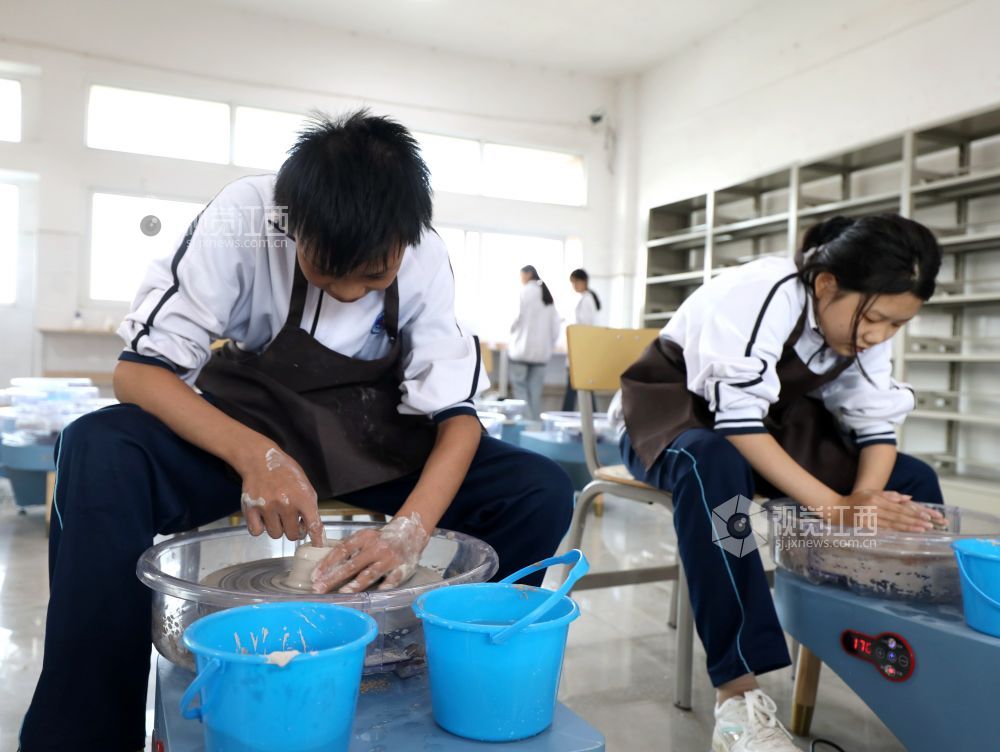 2024年10月14日,在江西省分宜县第六中学,学生在课堂上体验陶艺制作,领略传统文化的魅力。近年来,分宜县各中小学校将中华优秀传统文化融入思政教育,积极打造传统文化特色课程,让学生在多彩校园里快乐学习、健康成长。