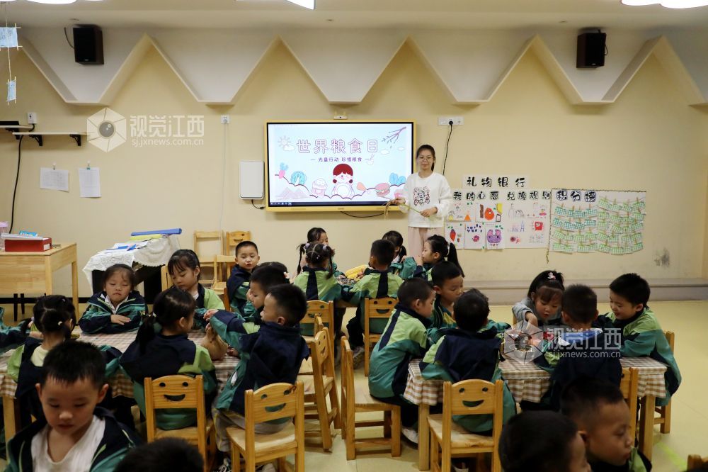 在世界粮食日即将到来之际,10月15日,江西省吉安市峡江县城南幼儿园开展“珍惜粮食 从小做起”主题教育活动,引导孩子们认识粮食,教育孩子们爱惜粮食,培养节约意识。