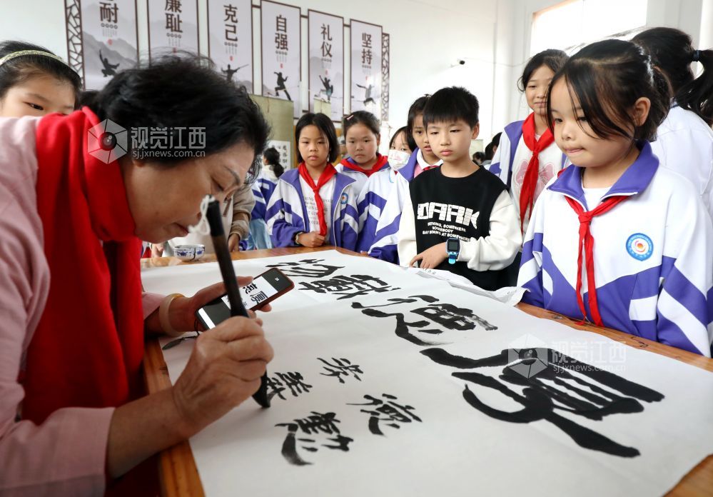 2024年10月22日,江西省分宜县诗词学会、老年人书画协会走进凤阳镇中心学校开展“书画进校园 翰墨传薪火”主题活动,进一步弘扬中华优秀传统文化,丰富校园文化生活。当日活动现场,诗书画爱好者挥毫泼墨,即兴创作,一幅幅作品笔酣墨饱、力透纸背,充分展现了书画艺术的神奇魅力。同时,现场摆放的书画作品展更是激发了学生们学习书法绘画的热情和兴趣,助力校园文化建设。