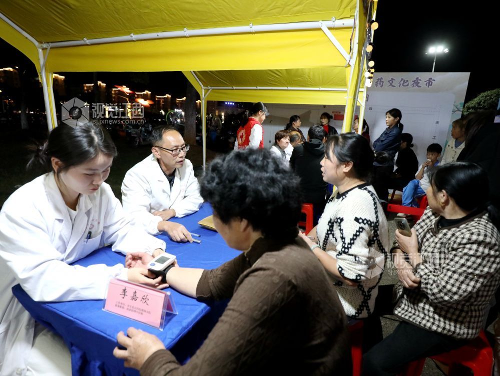 2024年10月24日,江西省分宜县的医疗卫生人员在天工广场百姓大舞台举办首届中医药文化夜市活动,为人民群众提供丰富多彩的中医文化体验和健康养生服务。当晚,全县知名中医专家现场免费为市民进行中医把脉问诊,并提供推拿、针灸、穴位贴敷、中医体质辨识等中医适宜技术体验,让市民亲身感受中医文化的博大精深和独特魅力。
