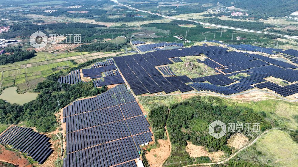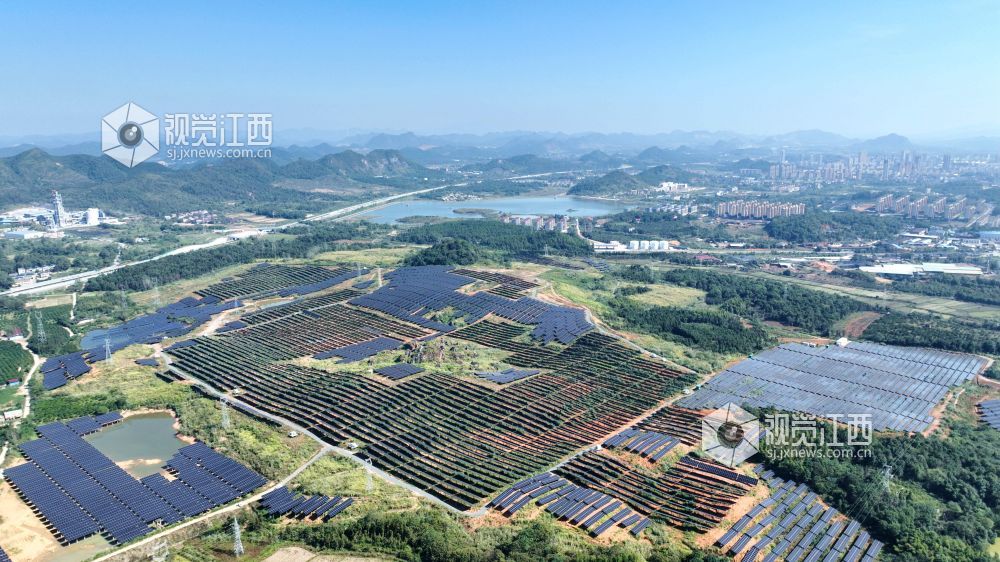 2024年10月25日,航拍江西省分宜县分宜镇水北村由废弃金矿改建的光伏发电站。近年来,分宜县积极推进绿色能源建设,大力治理废弃矿山,并利用荒山、坡地发展光伏发电项目,实现生态与经济效益双丰收。