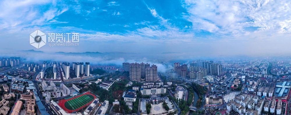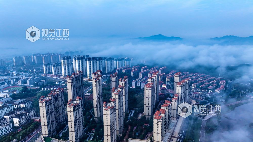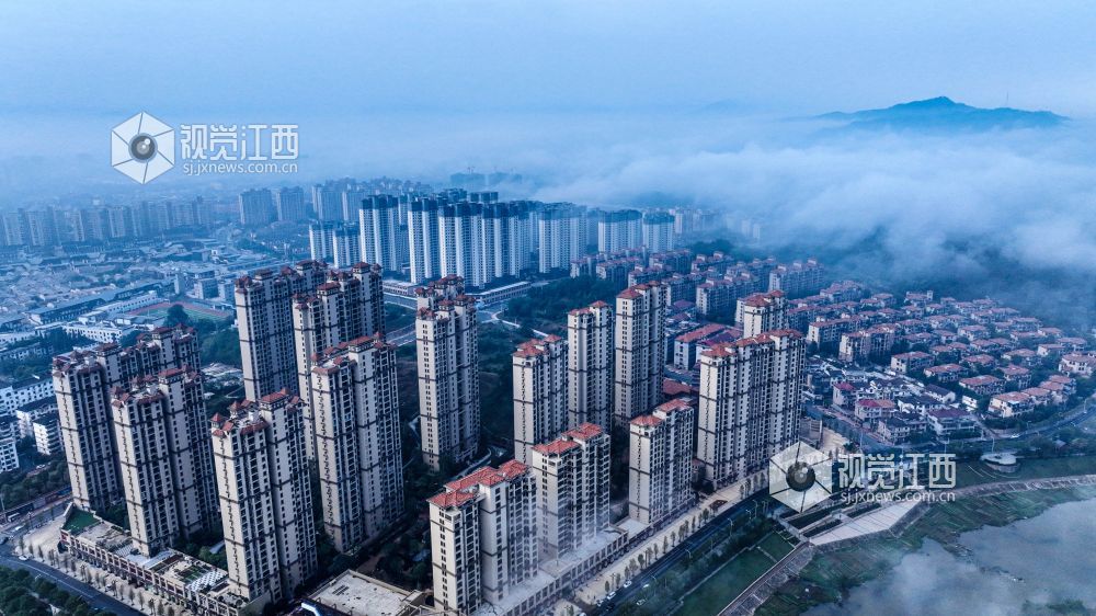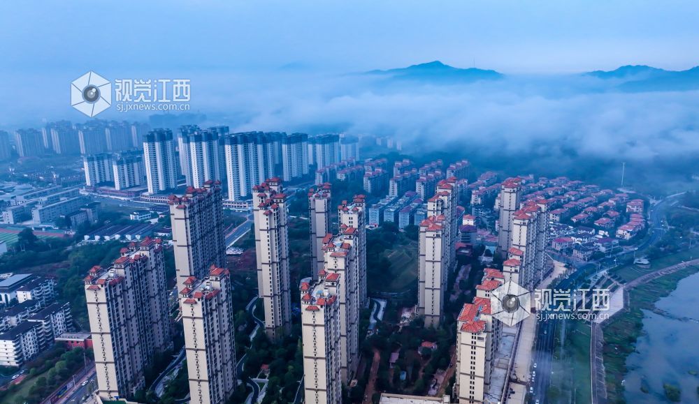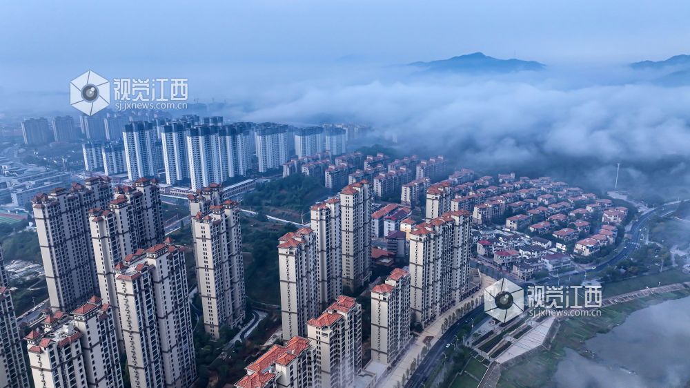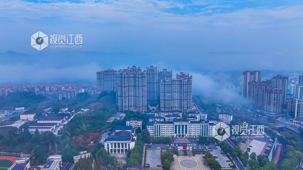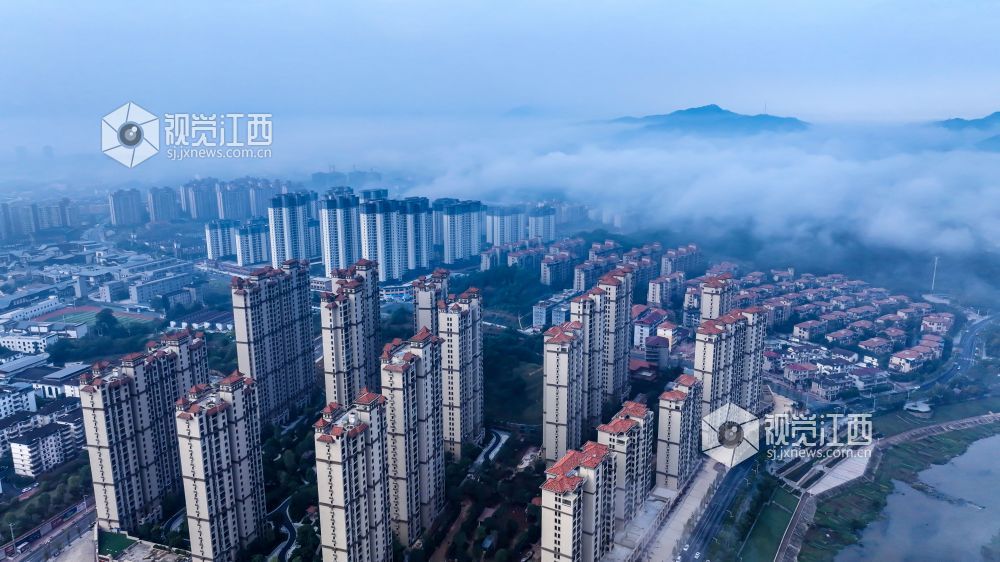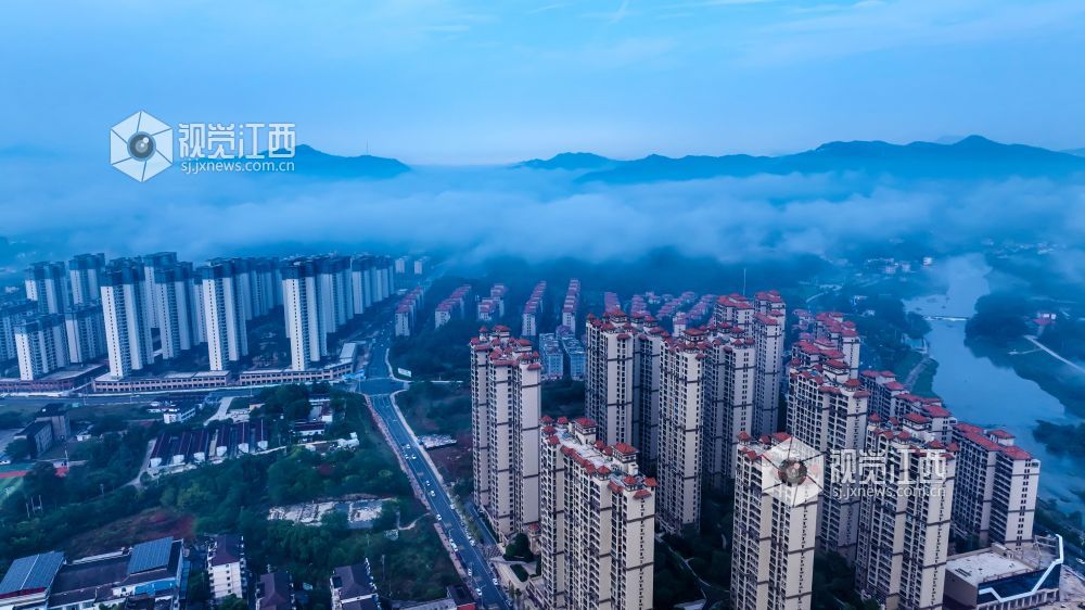 2024年10月29日,雨后的江西省宜春市万载县县城云雾缭绕,景美如画。