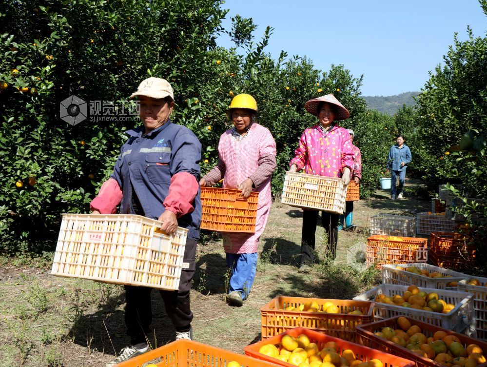 2024年10月29日,在江西省分宜县分宜镇水北村蜜橘种植基地,果农们忙着采摘蜜橘。近年来,分宜镇因地制宜,大力引导农户发展特色蜜橘产业,并打造农旅一体化观光采摘园,以农促旅,以旅兴农,推进生态观光农业和乡村旅游业融合发展,实现农业增效、农民增收,助力乡村振兴。