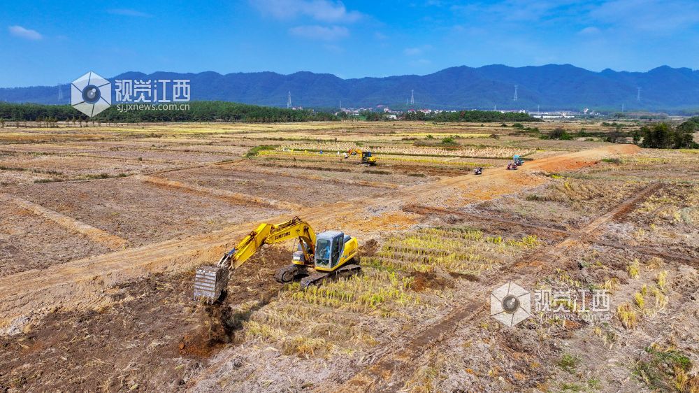 2024年10月31日,江西省吉安市吉水县八都镇高标准农田项目建设现场,各种机械正在紧张施工作业。秋收过后,江西省吉安市吉水县拉开高标准农田建设序幕,工程建设按照“田成方,渠相通,路相连,旱能灌,涝能排”的要求持续推进,确保粮食稳产丰收。