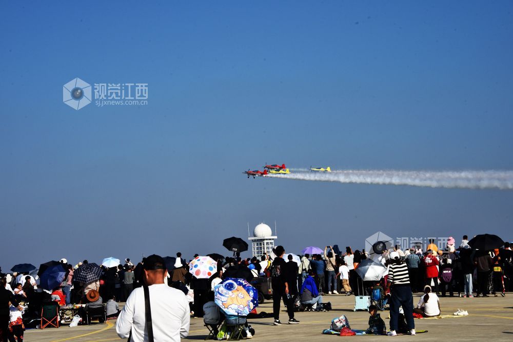 11月3日,在江西南昌举办的2024中国航空产业大会暨南昌飞行大会,吸引了众多游客前来观看。大会现场,有红鹰表演队彩烟编队通场、特技表演队空中放烟火等飞行表演。本届大会还包含民用航空展、航空航天科普展等多项内容,大会将持续至11月4日。
