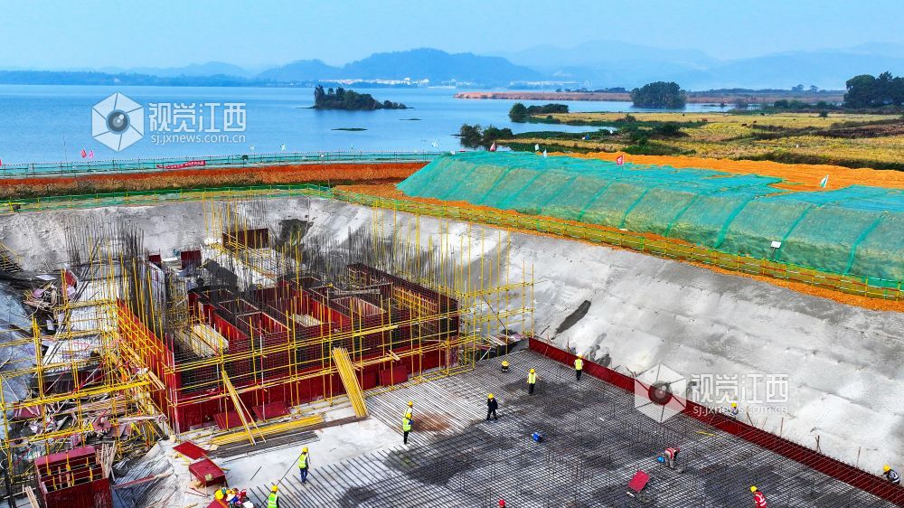2024年11月5日,江西省吉安市吉水县八都镇住岐村,江西省峡江灌区工程(一期)项目二标段(吉水段)住岐泵站,现场正在紧张施工。