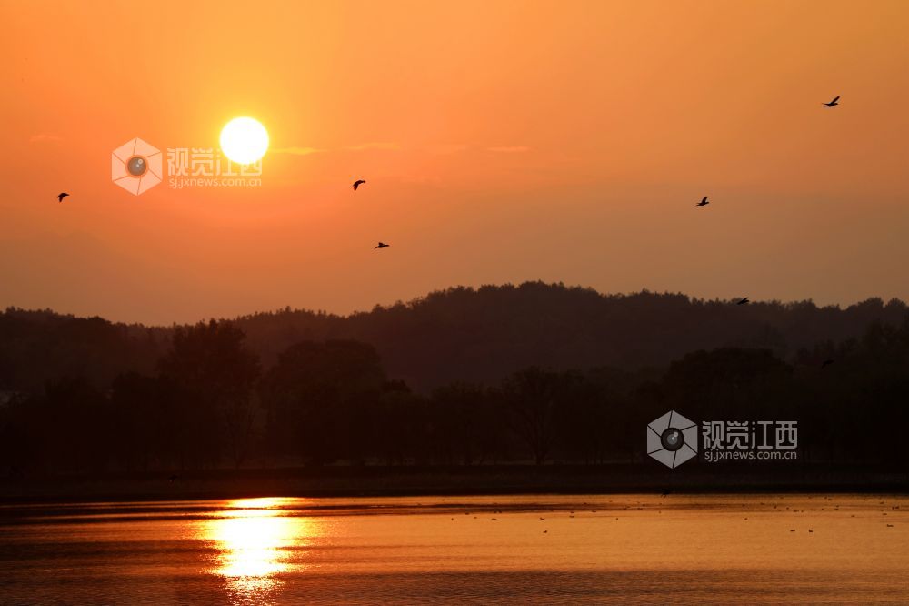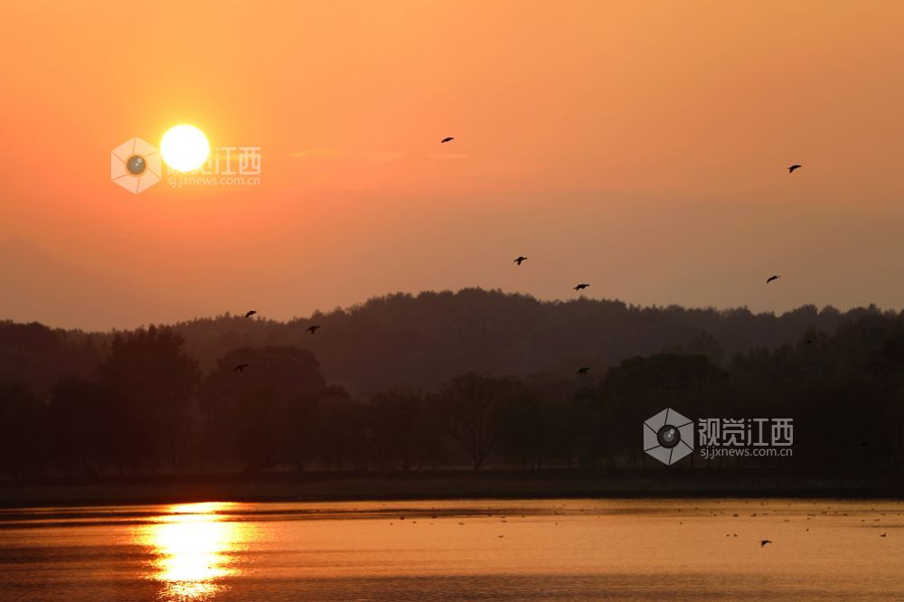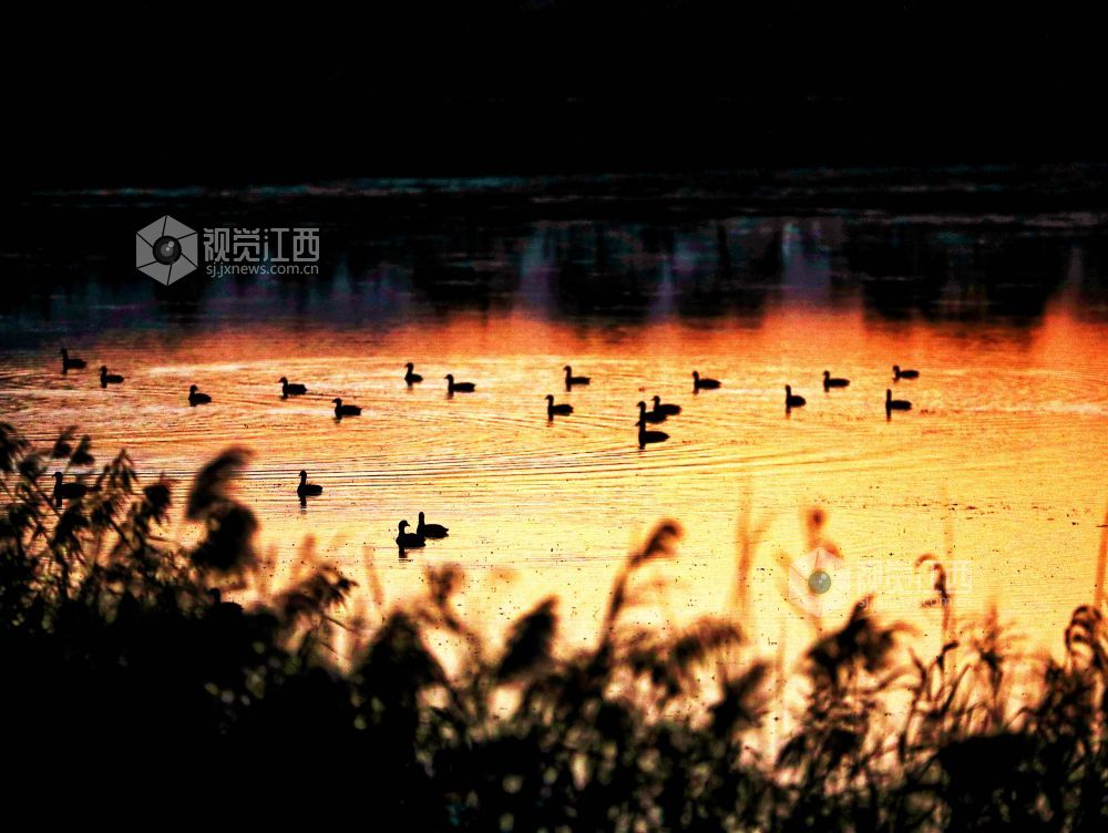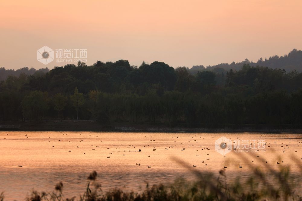 江西分宜:夕照湿地候鸟欢