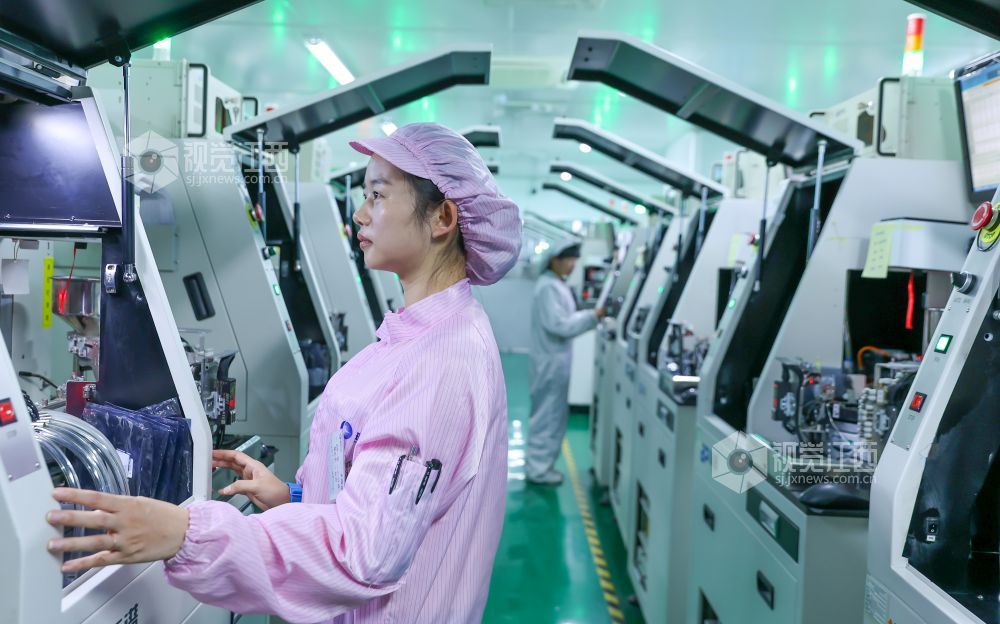 2024年11月14日,江西省瑞昌经开区科技园江西瑞晟科技有限公司生产车间内,工人们正在智能生产线上赶制订单。