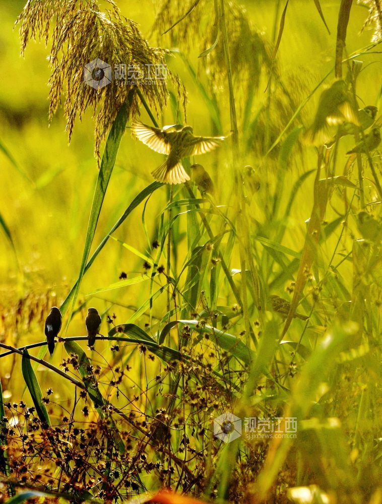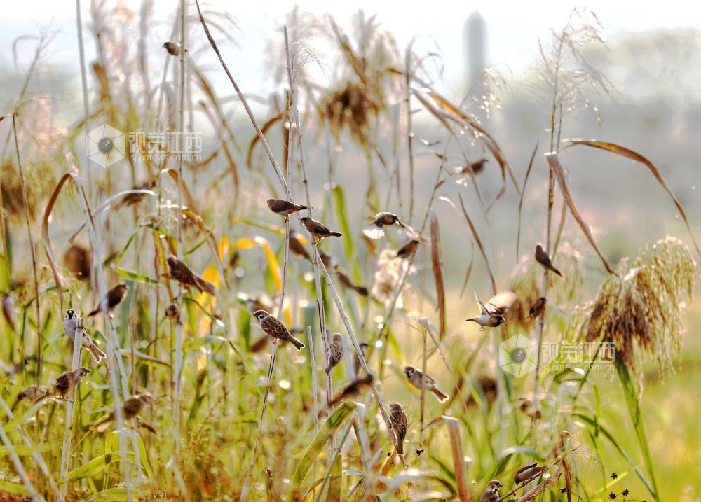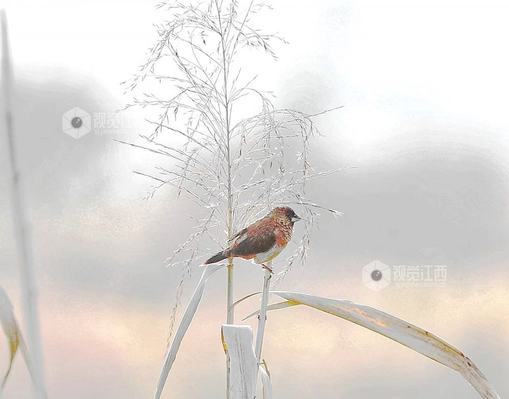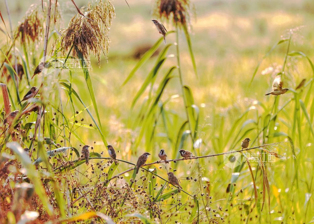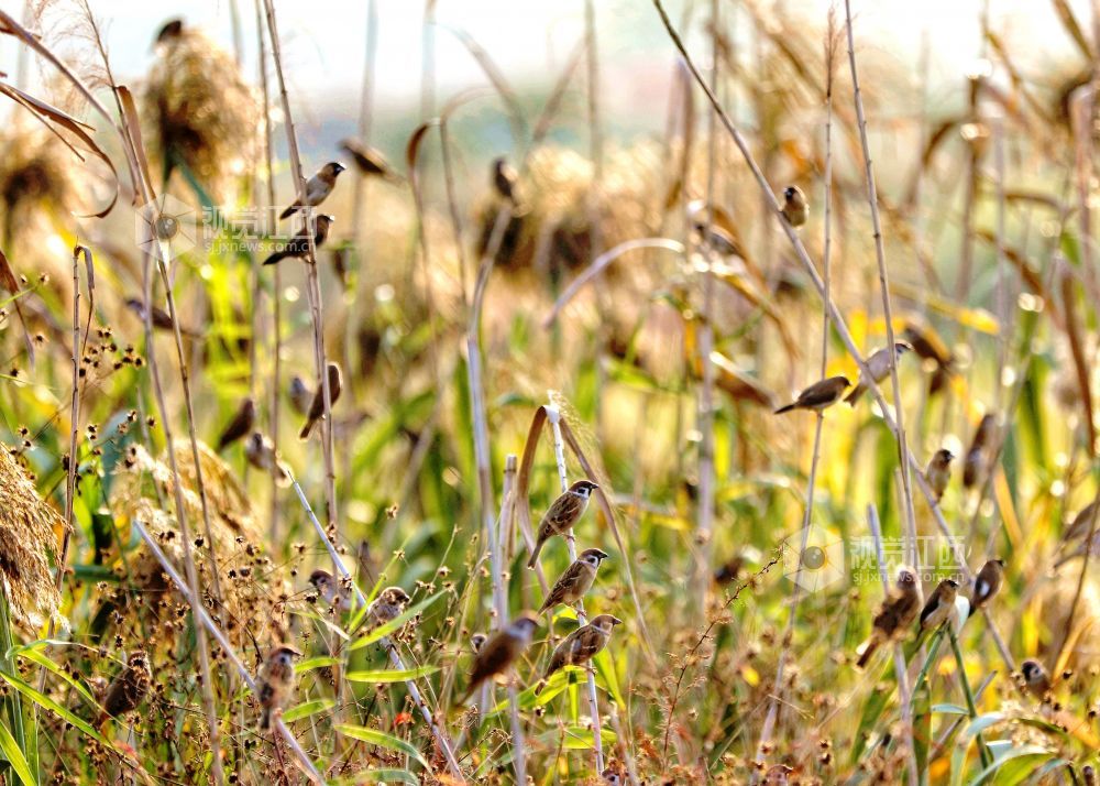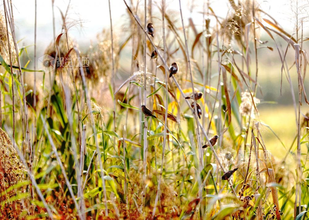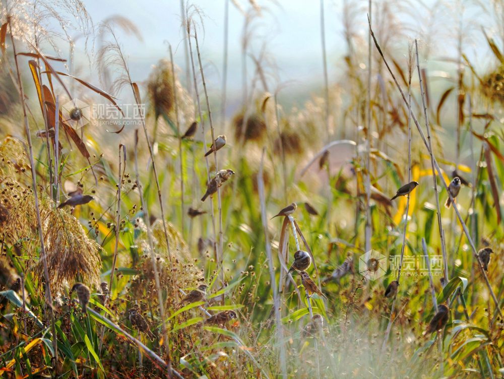 2024年11月14日,江西省分宜县分宜镇介桥村,成群的鸟儿时而栖息在芦苇上,时而翩翩起舞,它们欢快的叫声为宁静的芦苇荡增添了一份生机,构成初冬时节一幅乡村生态美景。