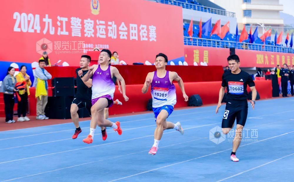 2024年11月23日,江西省瑞昌市体育公园内,警察运动员在赛场展开激烈角逐。