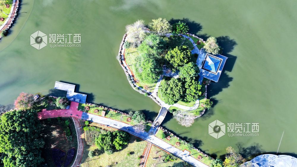 2024年11月26日,江西省吉安市吉水县焕然一新的鉴湖公园景色宜人,市民正在这里休闲健身,乐享冬日暖阳。
