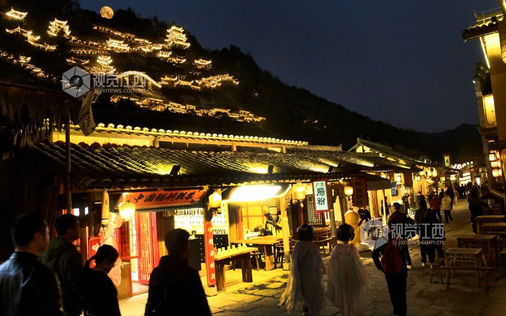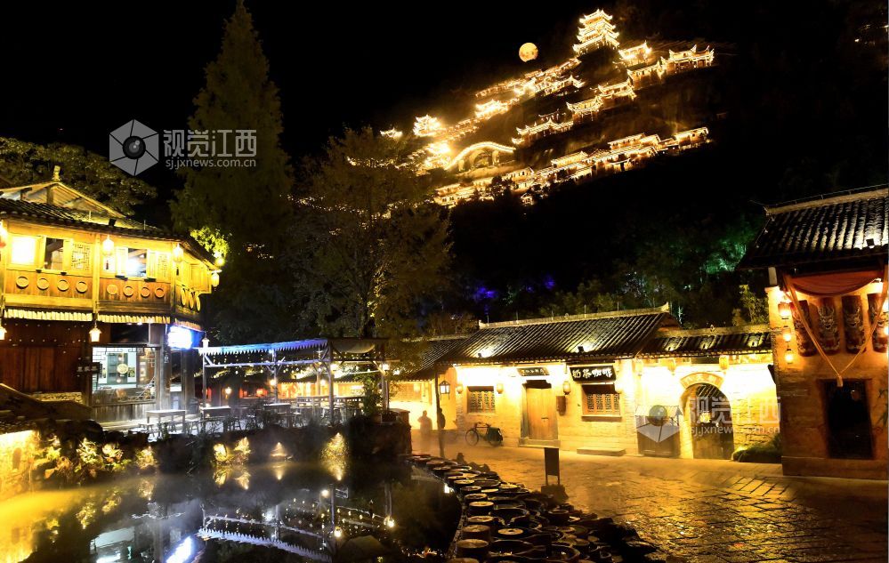 据了解,江西省上饶市广信区望仙谷悬崖民宿,是“悬挂”在110多米的灵山望仙峡谷崖壁之上的“景观民宿”,崖上建有悬道、民宿、阁楼等。每当夜幕降临,精心打造的崖上“民宿”,在色彩斑斓的灯光映衬下,宛如一幅幅灯火阑珊、怡然恰静的山居图。大有“深山夜色彩尽染,崖上民宿不夜天”的意境,吸引八方游客慕名前来休闲观光 。
