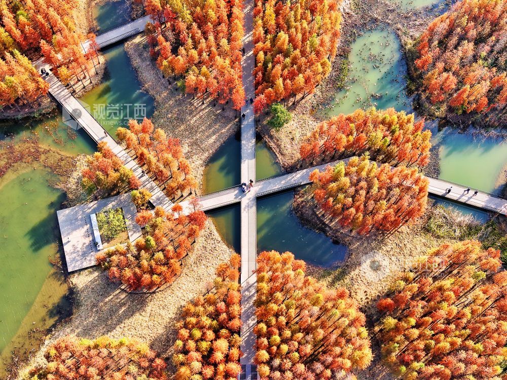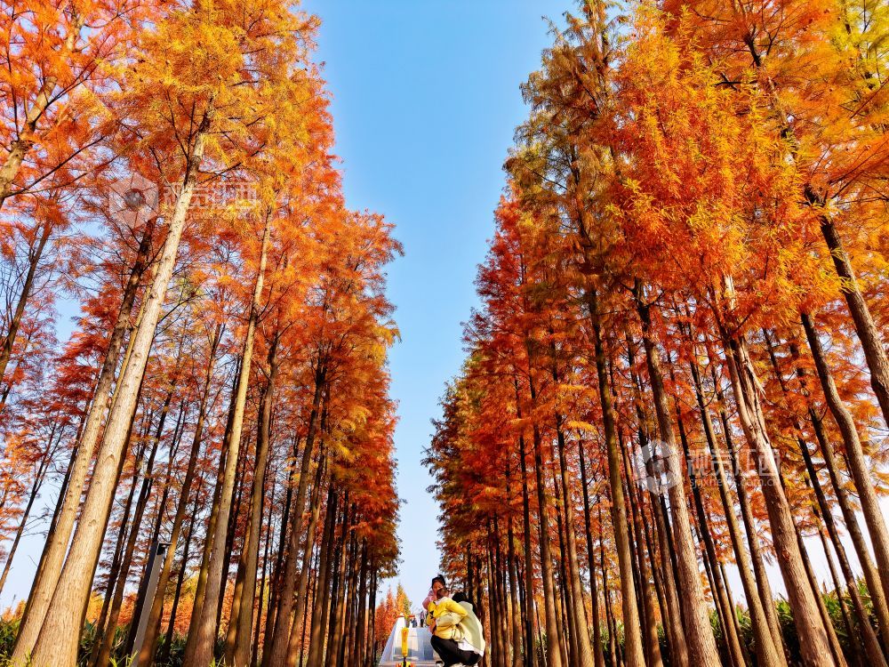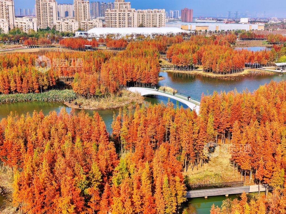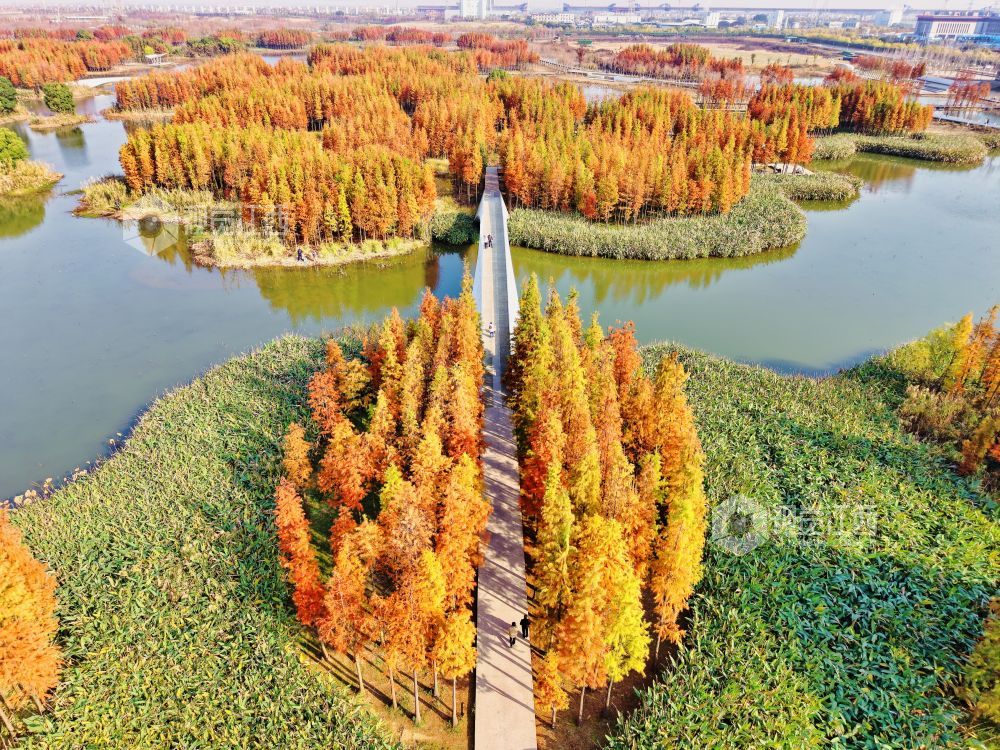 12月14日,南昌市鱼尾洲湿地公园的红杉树也随着季节的变换成了红色。耀眼的红杉树与湿地风景勾勒出美丽的生态画卷,也成了市民们的“网红’打卡地。