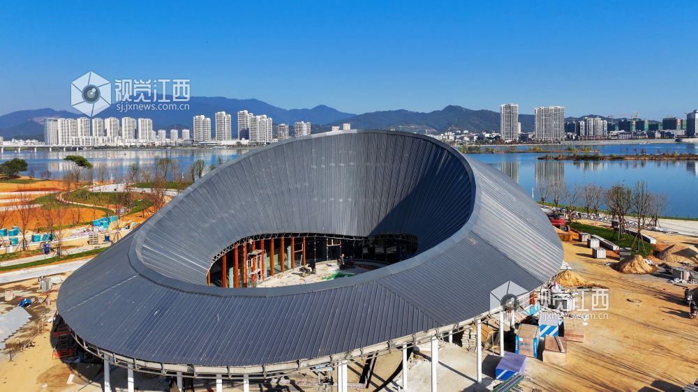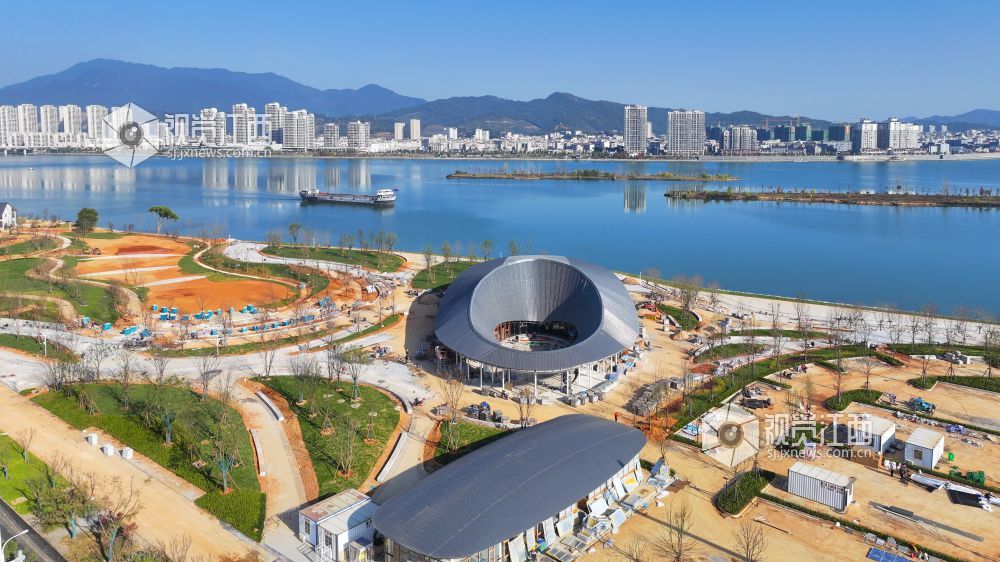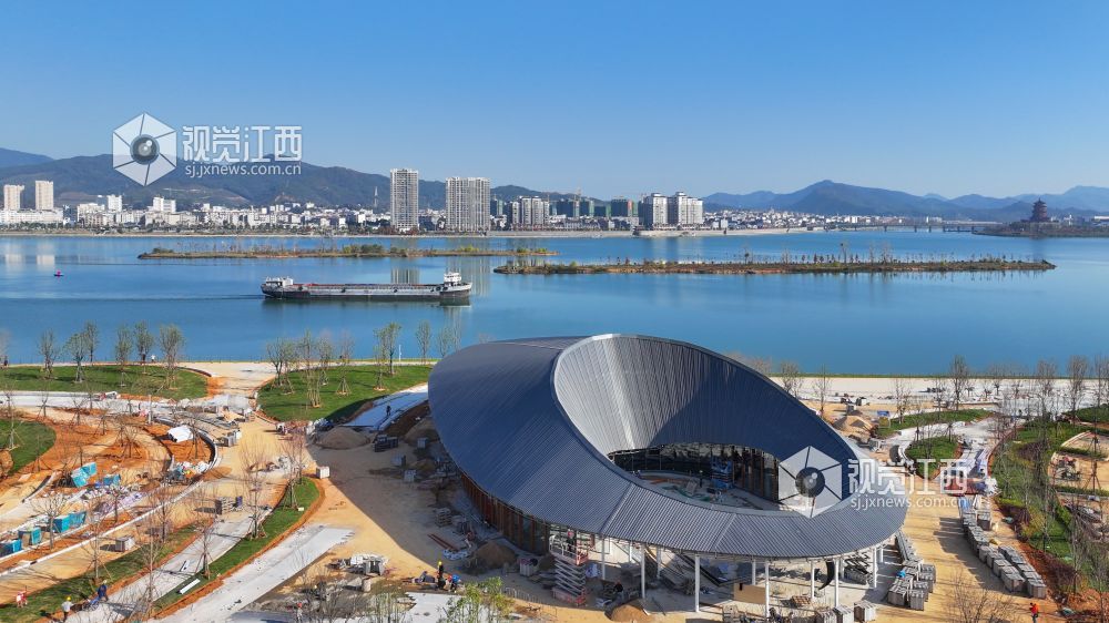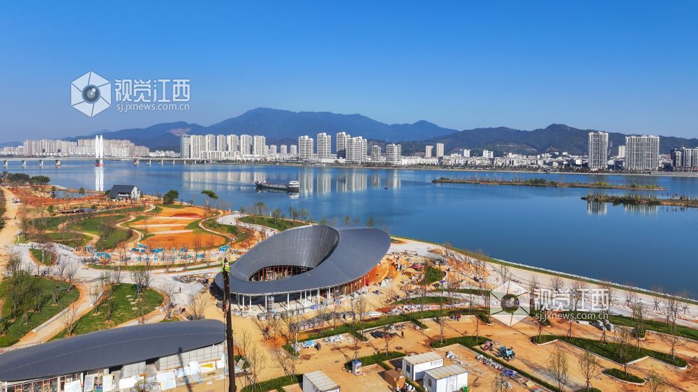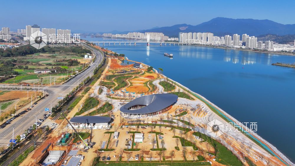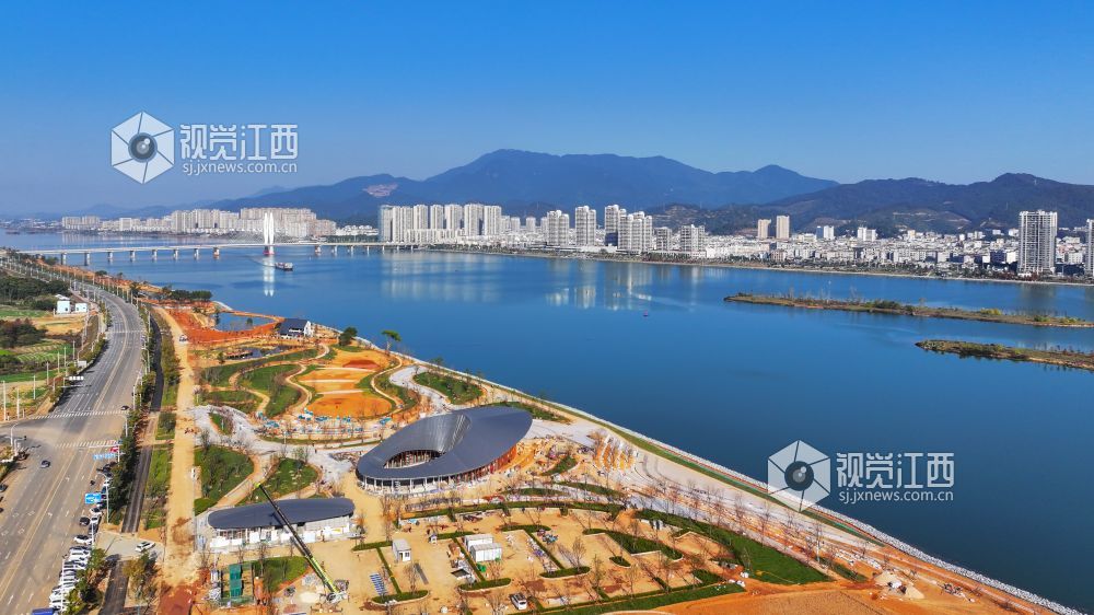 2024年12月16日,江西省吉安市吉水县赣江西岸“金滩·十里画廊”建设项目施工现场一片火热,工程建设者正在紧张施工中。