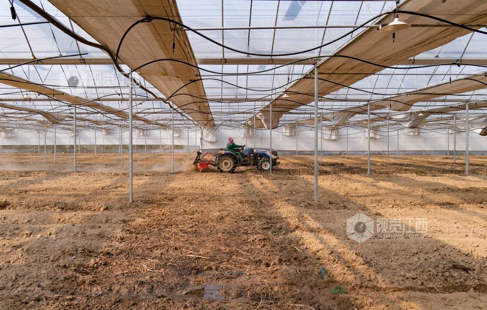 2024年12月19日,在江西省金溪县浒湾集镇入口处创办的勤荣果蔬基地大棚里,一派冬收冬种忙碌景象。