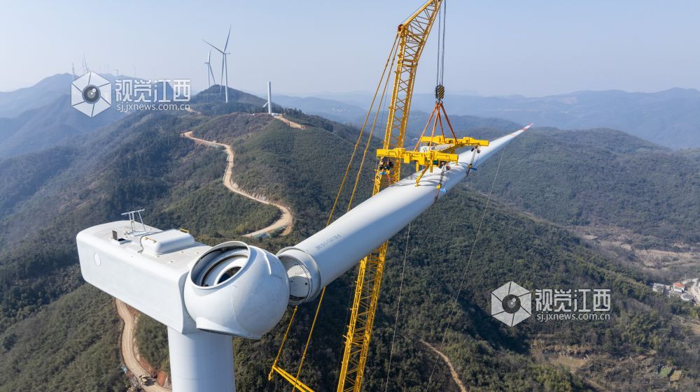 瑞昌市横立山二期风电项目总装机容量为42.9MW,共安装6台单机容量为7.15兆瓦的风电机组,是目前国内单机容量最大的山地风电机组。此次吊装的风电机组总重量为697吨,单支叶片长108米,轮毂中心高度125米,叶轮直径221.83米,叶轮扫风面积约3.9万平方米,约相当于5.4个标准足球场的面积。该项目建成投产后,每年可为电网输送清洁电能约1亿千瓦时,节约标煤3.1万吨,减少二氧化碳排放约7.4万吨。