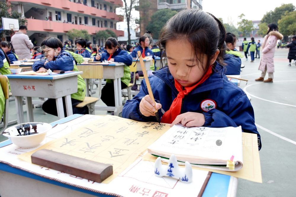 2024年12月25日下午,江西省抚州市南丰县书法家协会开展的“书法艺术家进校园”百人现场书写大赛走进省级“书法教育示范?!笔笛樾⊙В?20名学生参加了此次书法大赛。