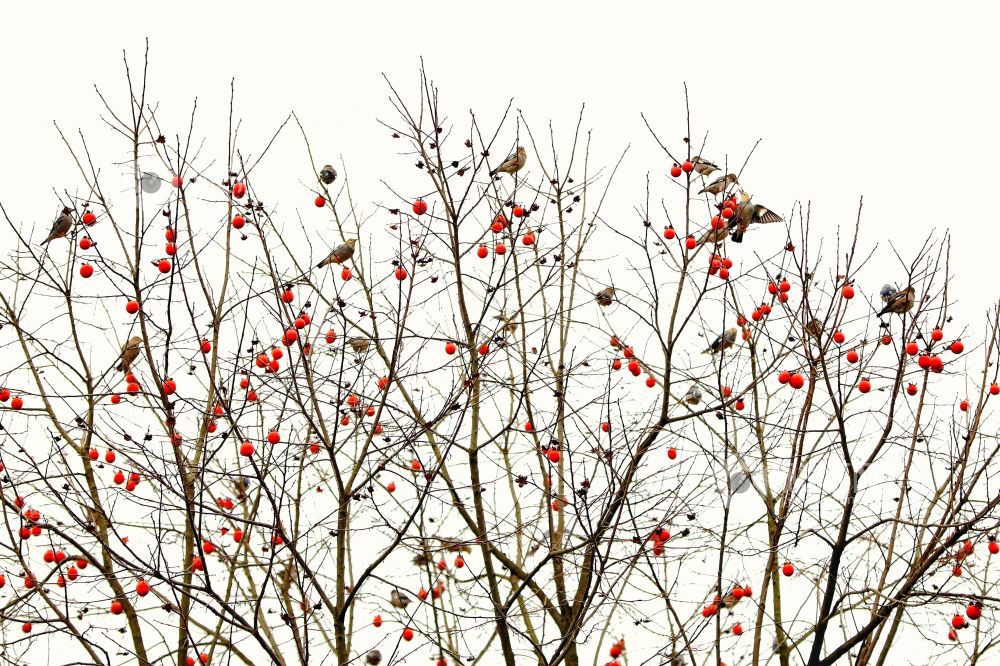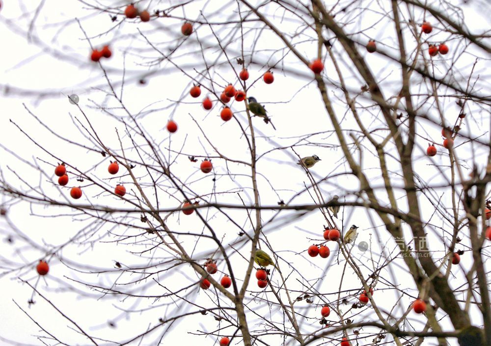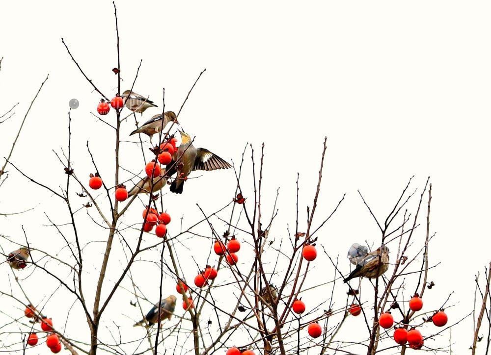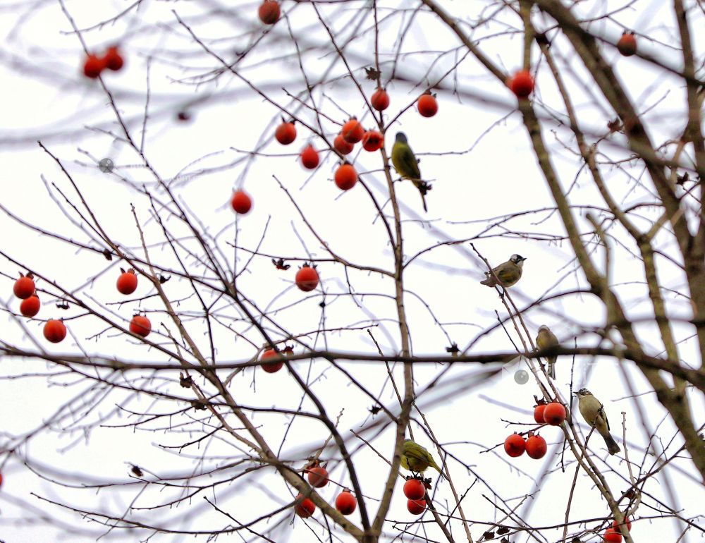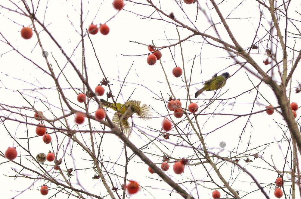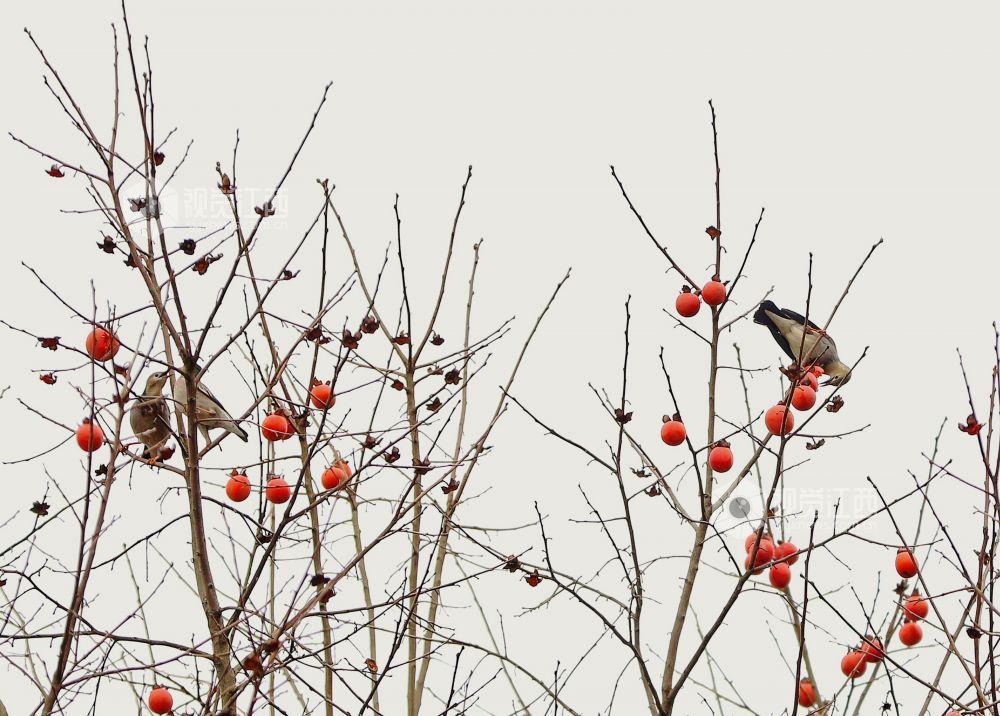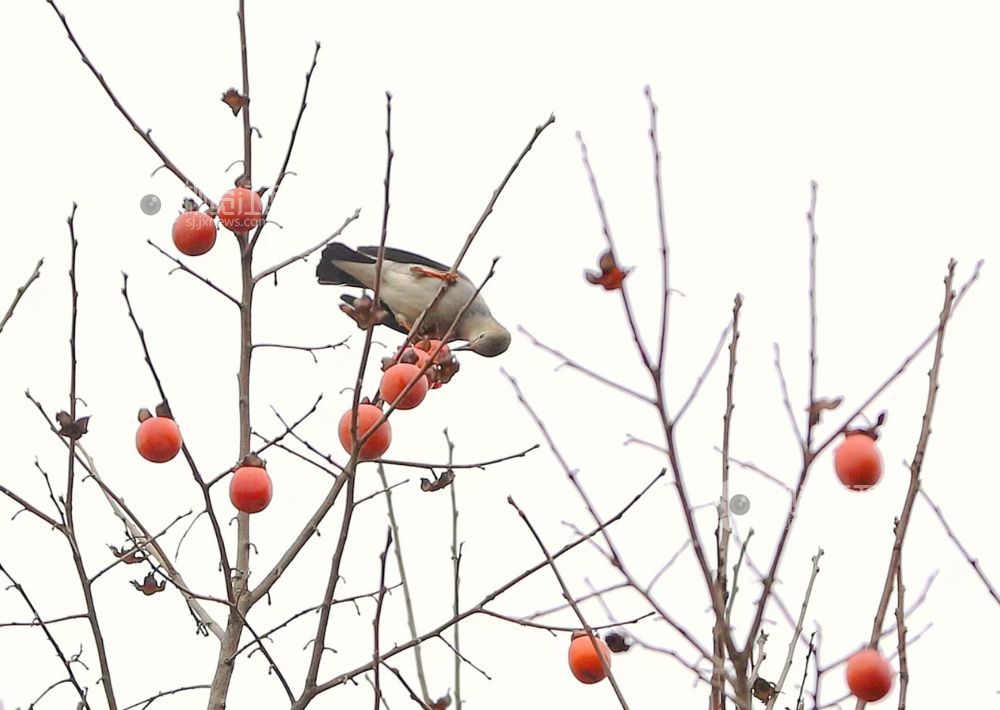2024年12月28日,江西省分宜县钤山镇下田村,村民门前的柿树上挂满了红彤彤的柿子,吸引着无数鸟儿前来觅食嬉戏,成为冬日乡村一道美景。