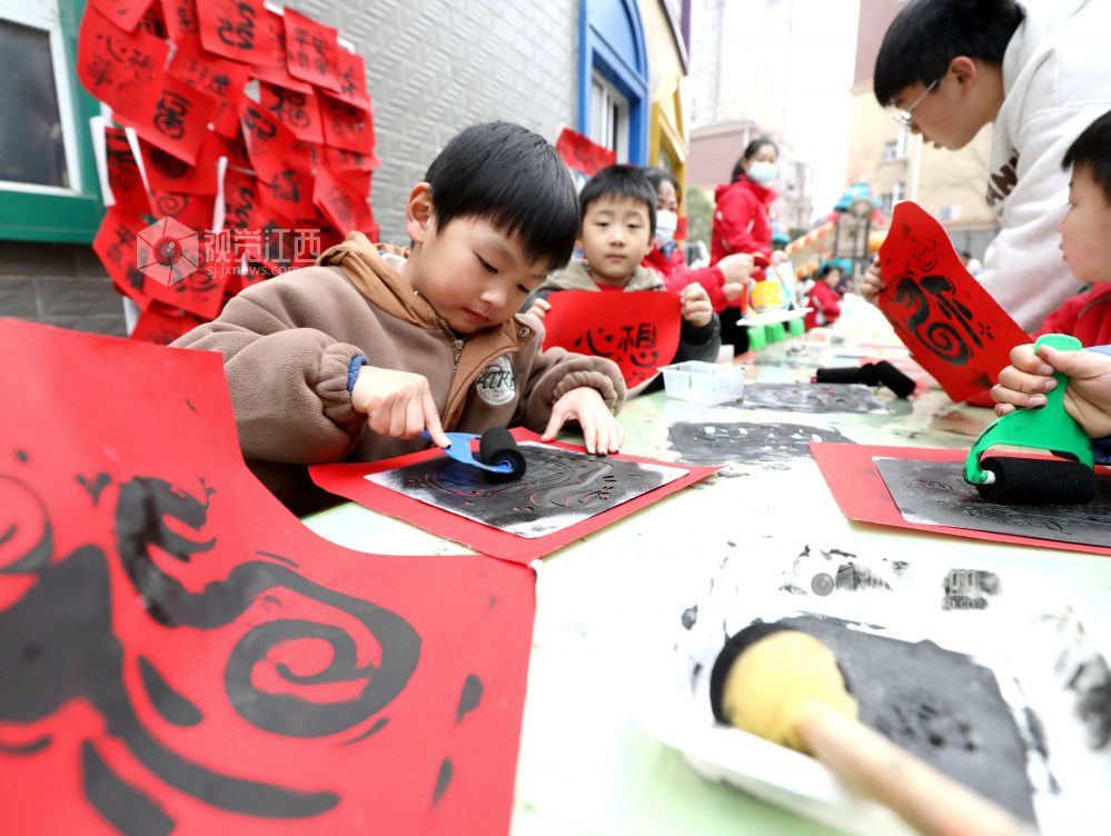 当日,孩子们在老师的引领下,将传统年俗与非遗文化串联,开展了舞龙、逛庙会、非遗手工制作等民俗文化活动,让孩子们从小感受中华优秀传统文化的魅力。