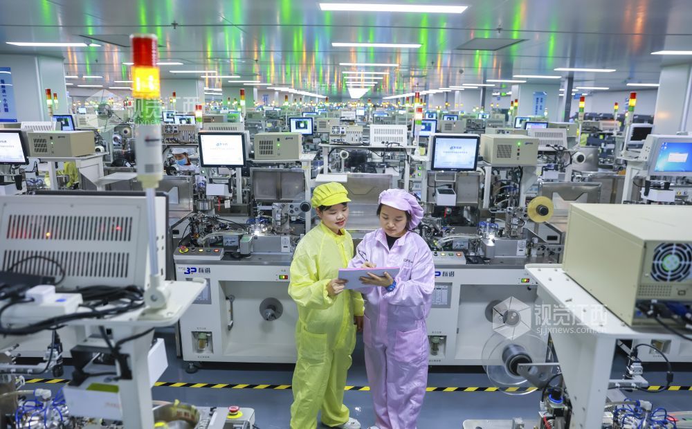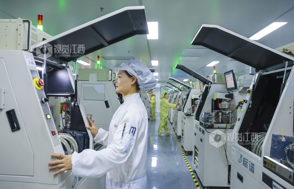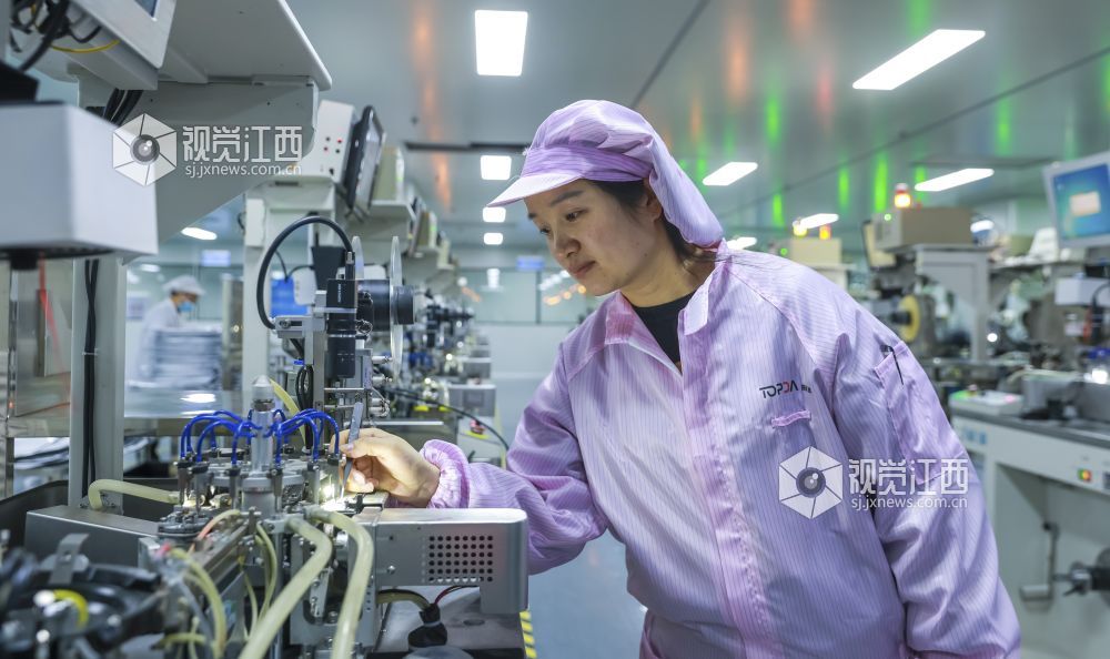 2024年12月30日,江西省瑞昌经开区科技园江西拓普达光电科技有限公司生产车间内,工人们正在智能生产线上赶制订单。