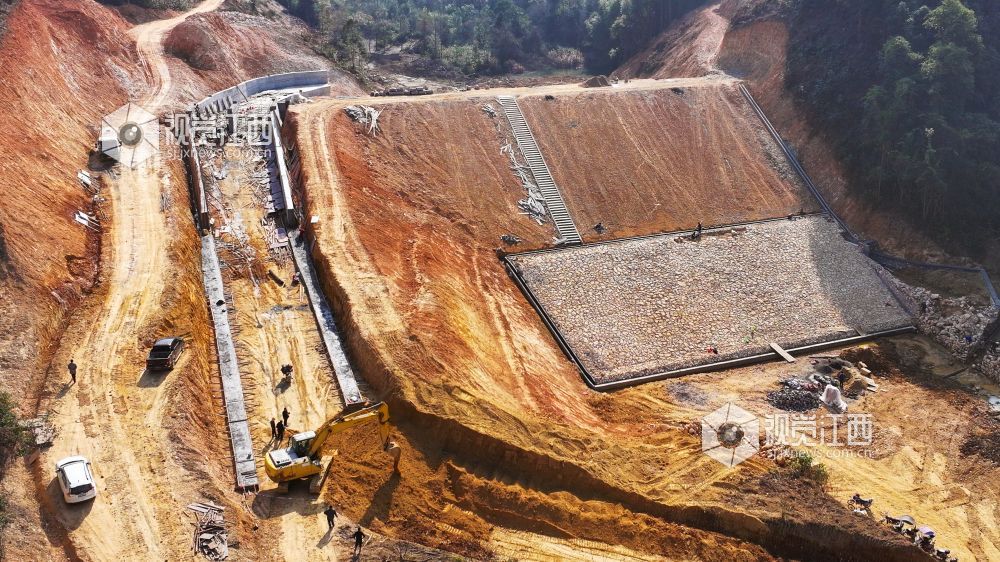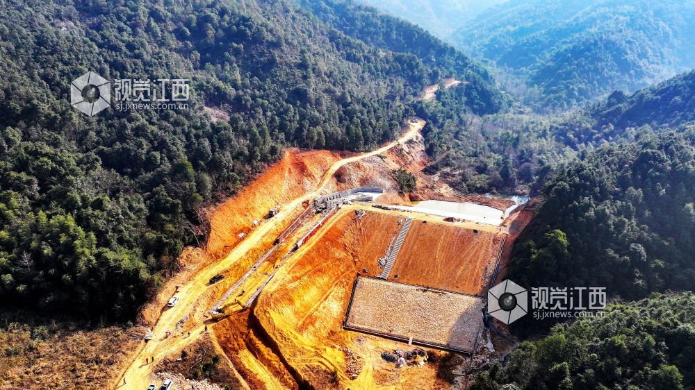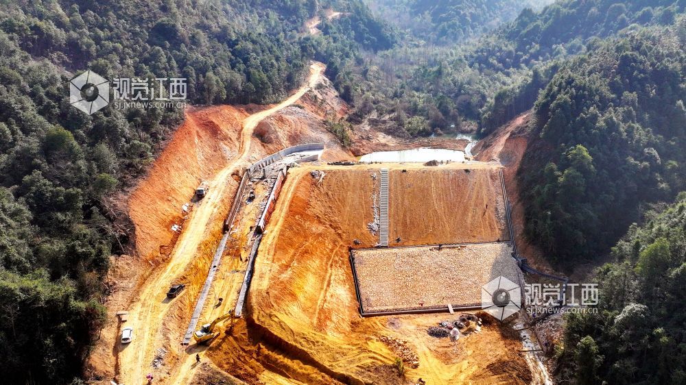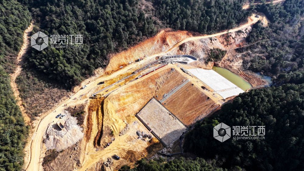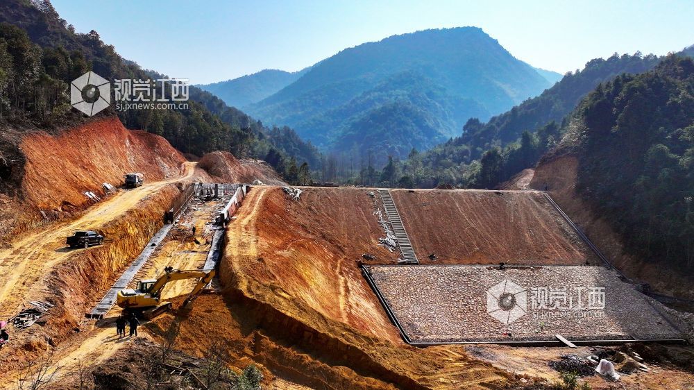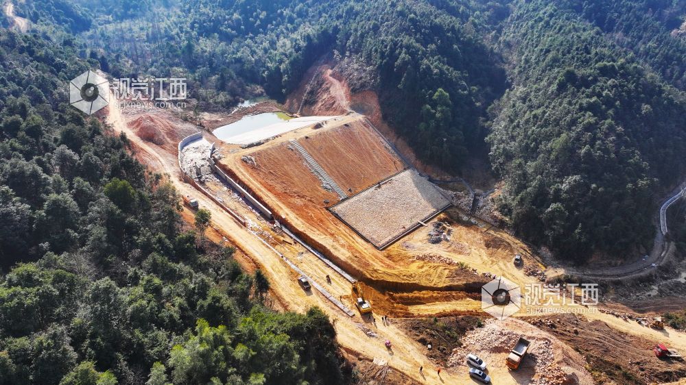 2024年12月31日,江西省吉安市吉水县螺田镇盘岭坑水库建设工地一片火热,施工人员正抢抓晴好天气进行施工。