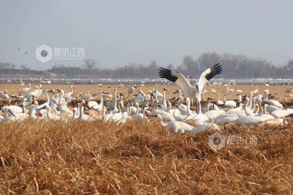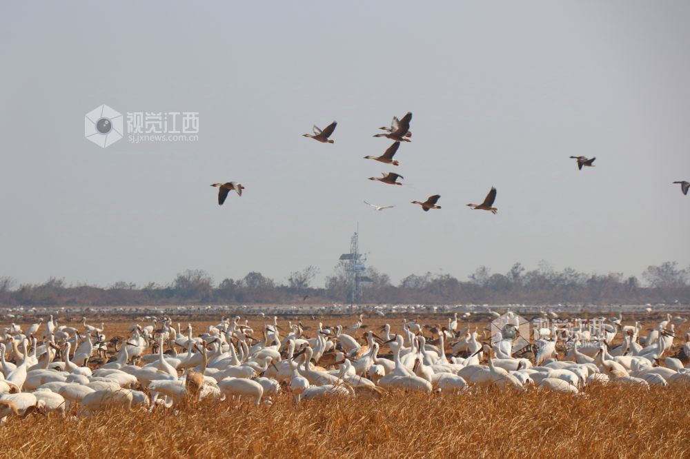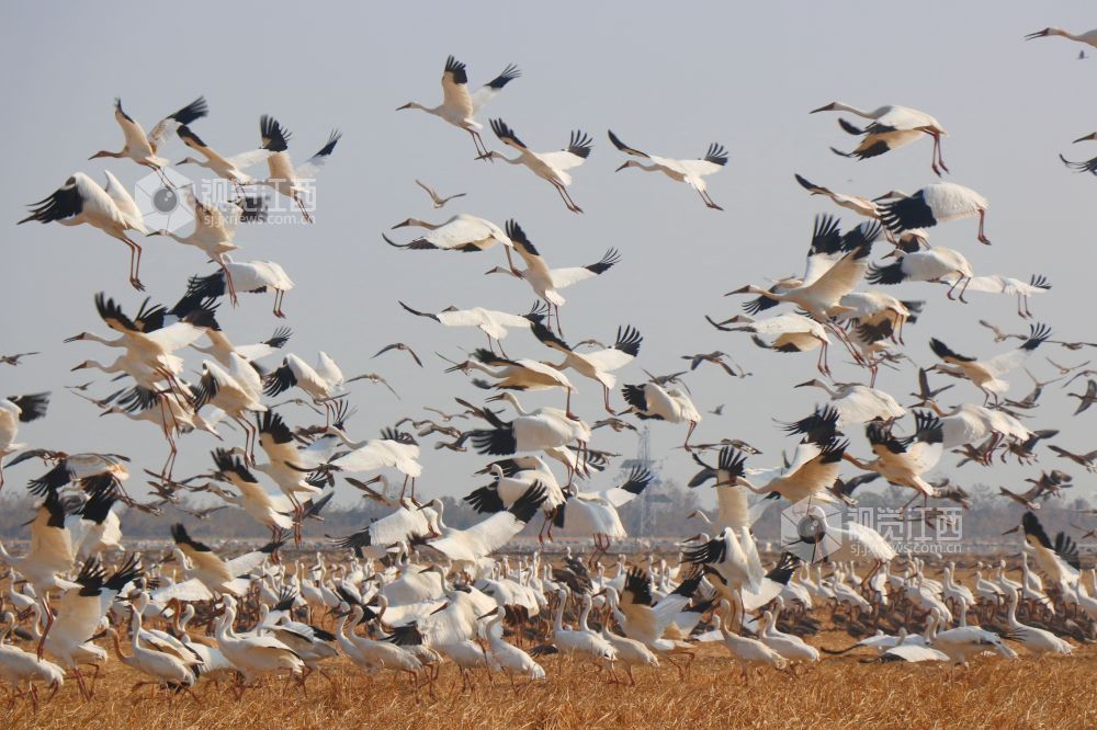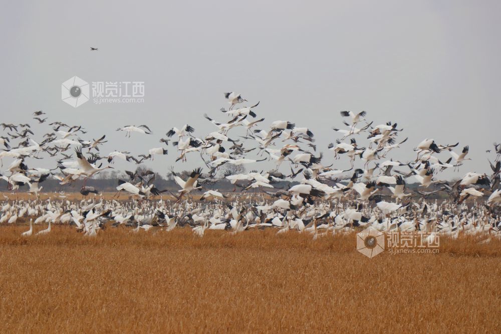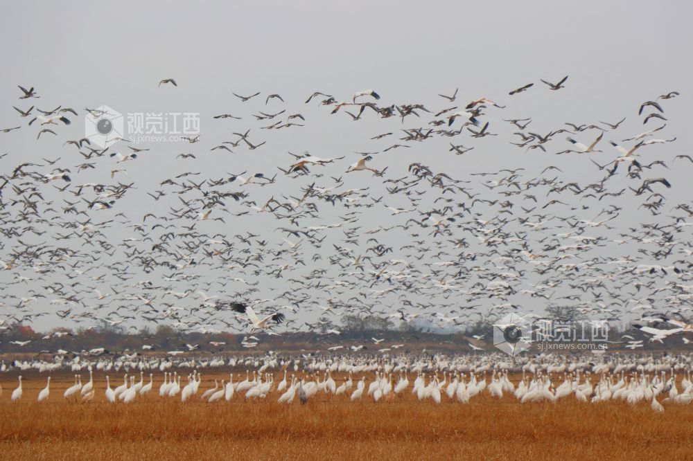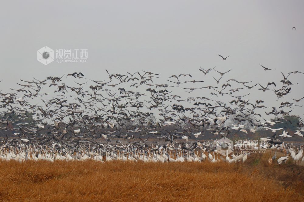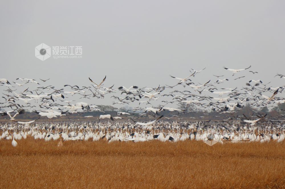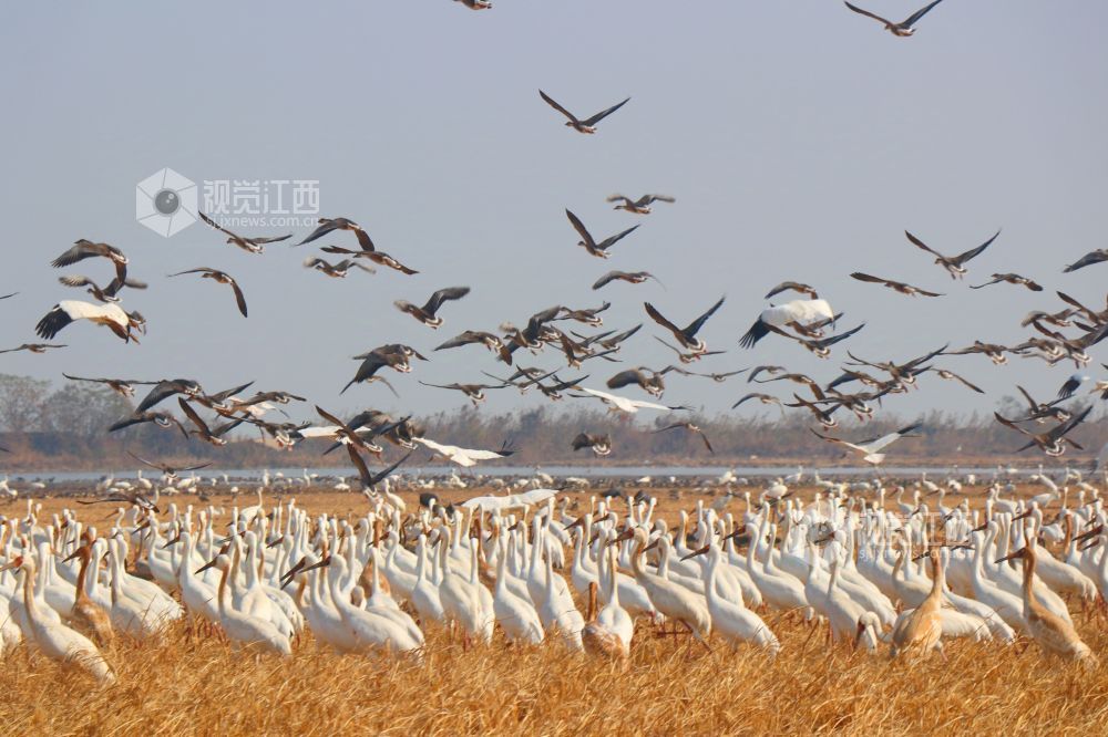2025年1月1日,江西省余干县康山垦殖场白鹤洲候鸟保护区,成千上万只白鹤、灰鹤、天鹅等越冬候鸟在田园鹤谷休憩觅食,嬉戏飞舞,悠然自得的身影与稻田融为一体,构成一幅美丽的生态画卷。