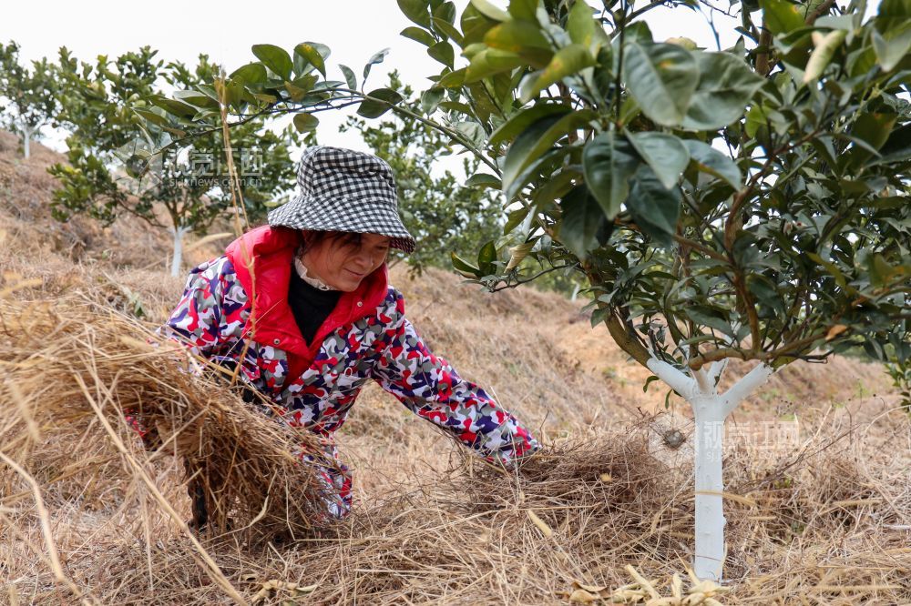 2025年1月8日,江西省吉安市吉水县白沙镇河口村一路山泉脐橙果业基地,果农为脐橙树剪枝、刷白、覆盖草垫,确保果树安全过冬。连日来,江西省吉安市吉水县白沙镇组织农技人员、党员志愿者协助果农对果园进行人工除草、物理防冻,确保果树安全过冬。