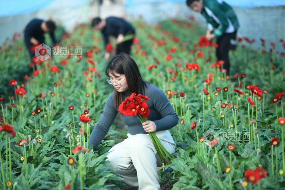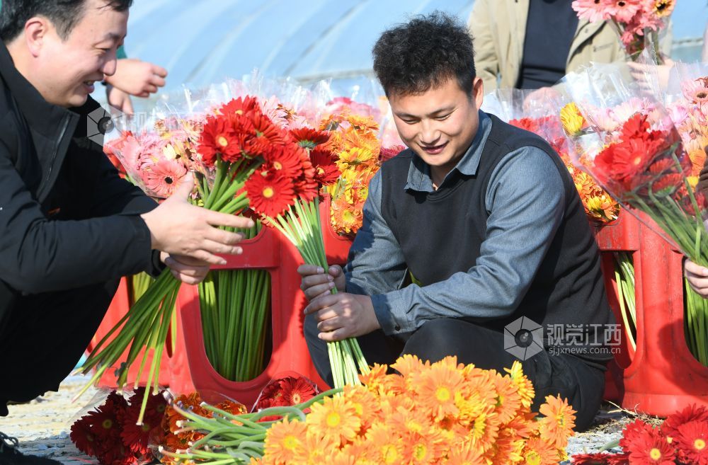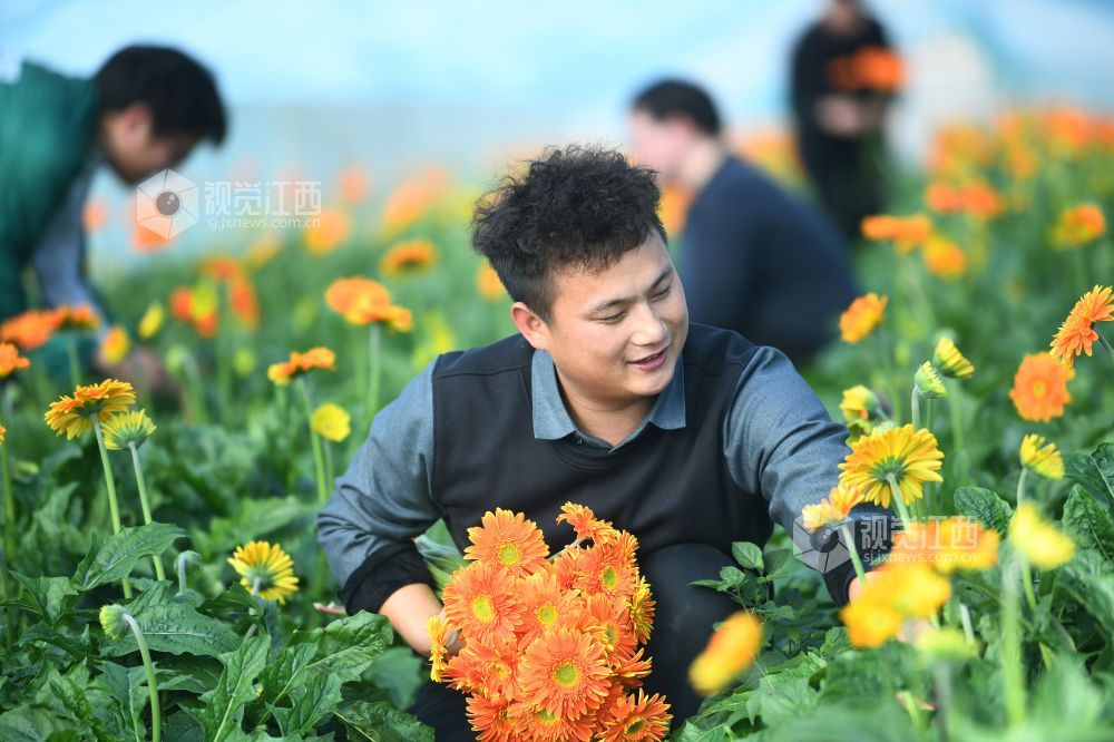 据了解,自2016年起,蒋传旺承包土地种植花卉,后扩大规模专种非洲菊,一朵朵五颜六色的非洲菊竞相绽放,并销往上海、浙江等市场,带动当地村民家门口就业增收。