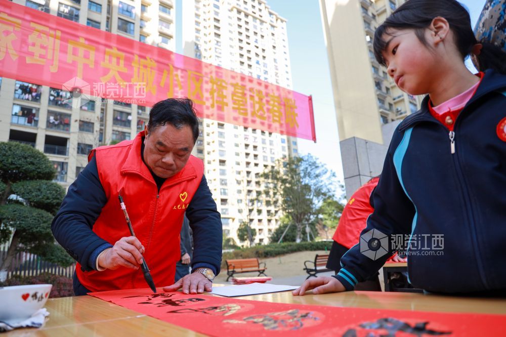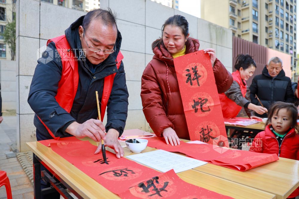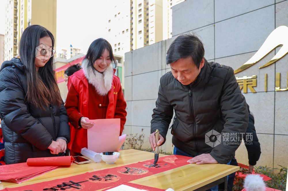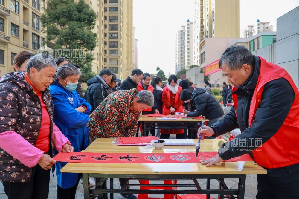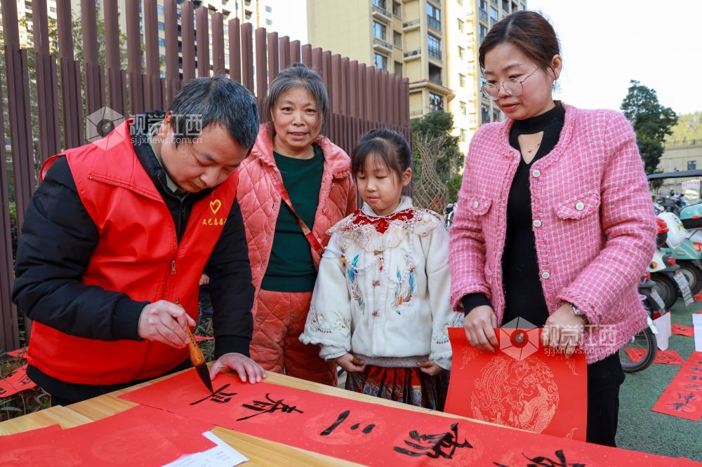 新春将至,1月16日,江西省吉安市吉水县书法家协会组织文艺志愿者开展“万福迎春”新时代文明实践活动,为群众书写春联和“福”字,将浓浓的新春祝福送到百姓手中。