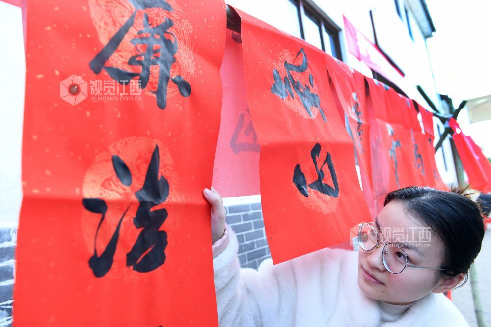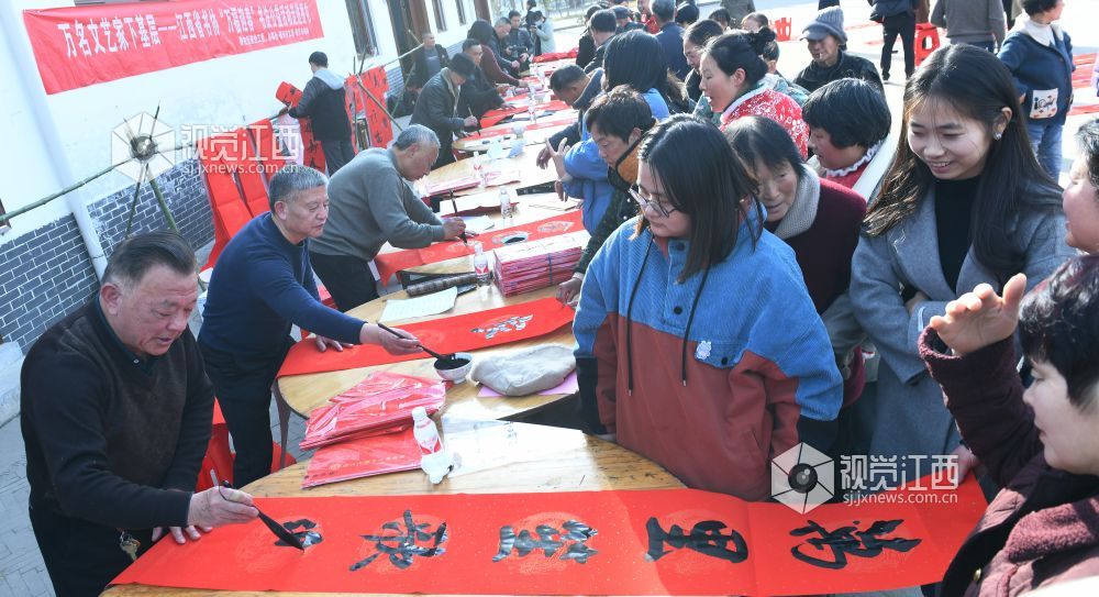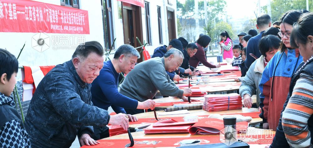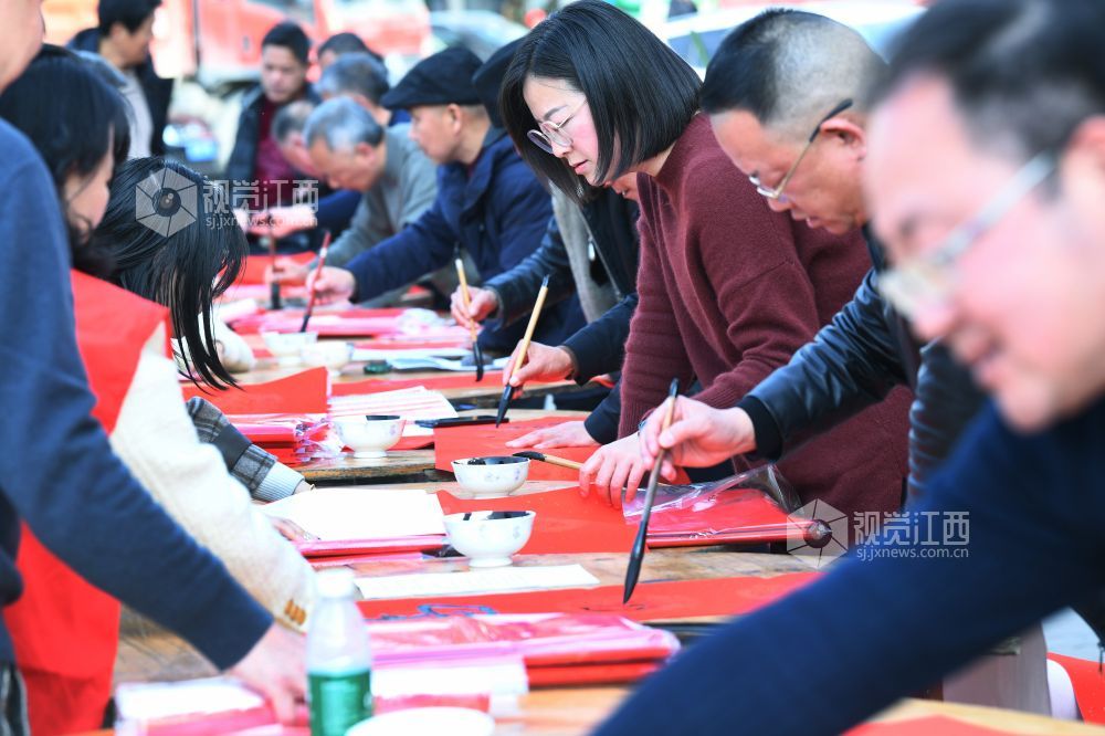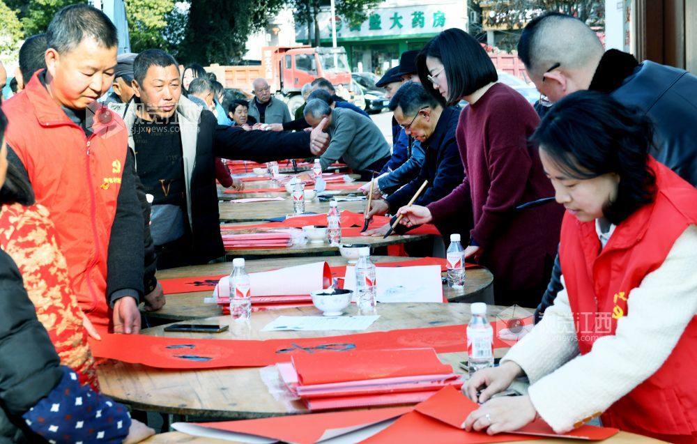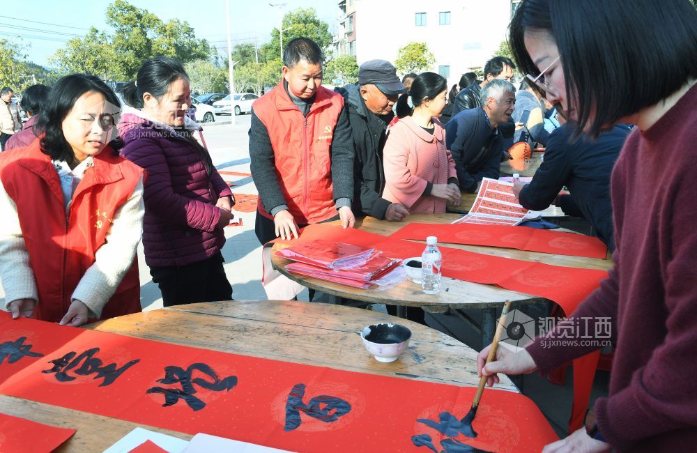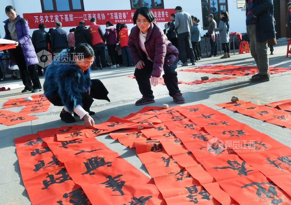 据了解,江西省德兴市文联联合该市香屯街道组织当地书法家开展“文艺进村,万福迎春”送春联公益活动。在德兴市香屯街道香屯村文化广场,书法家们现场挥毫泼墨,为村民们送上一幅幅充满祝福的春联。