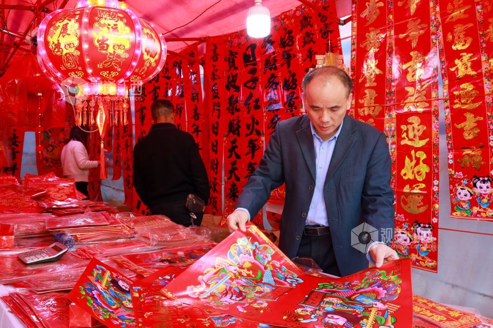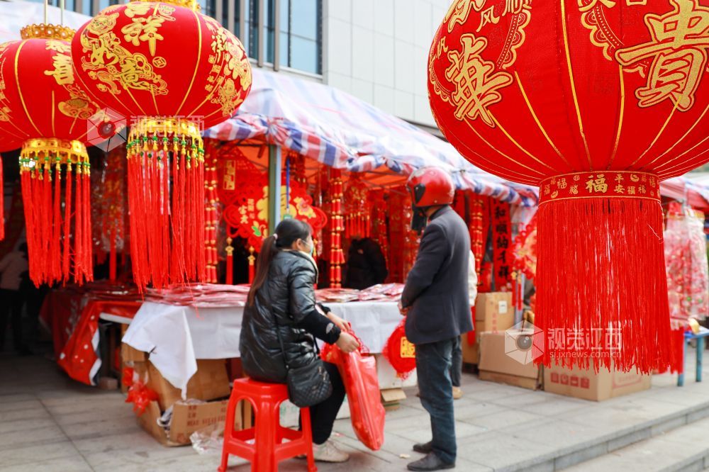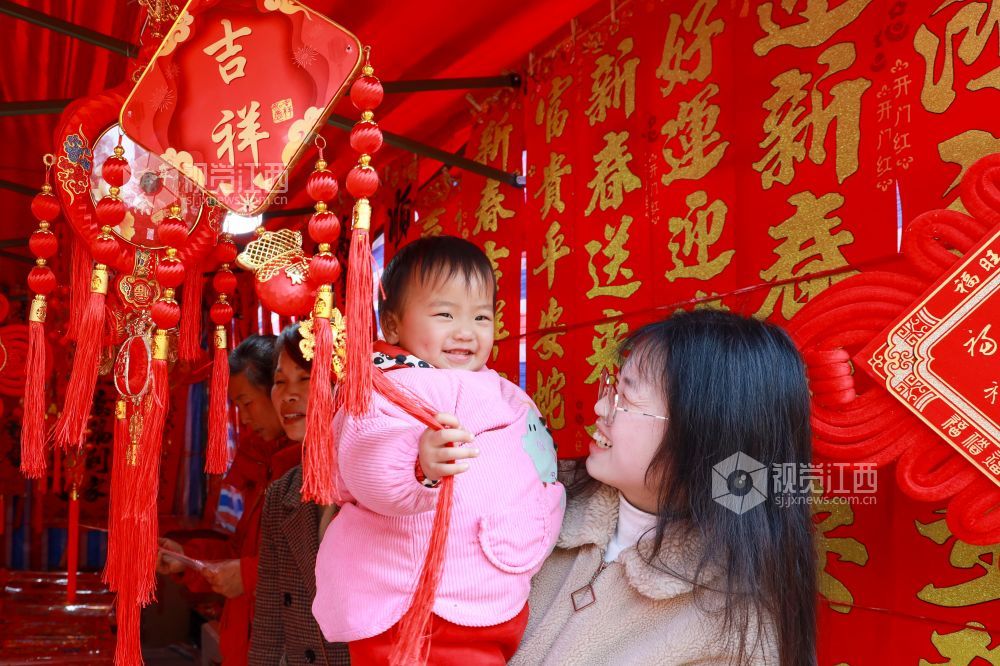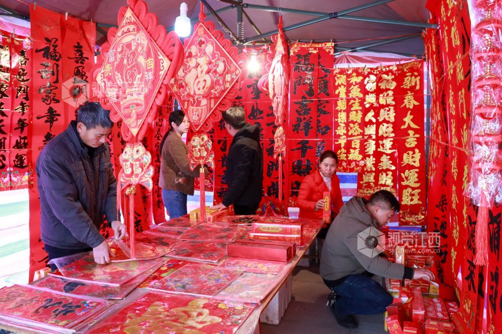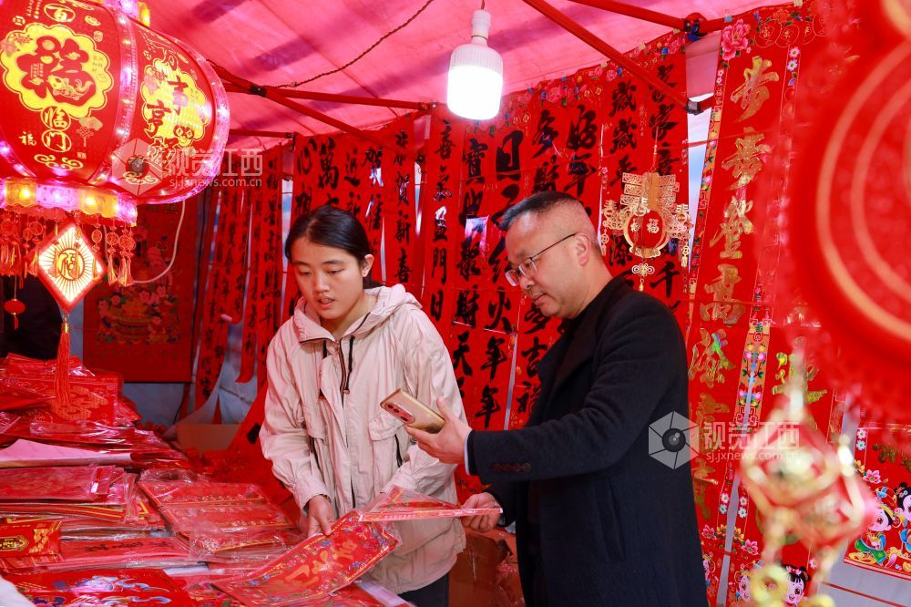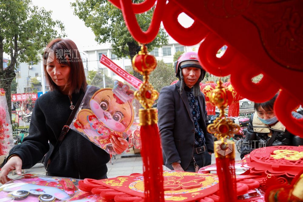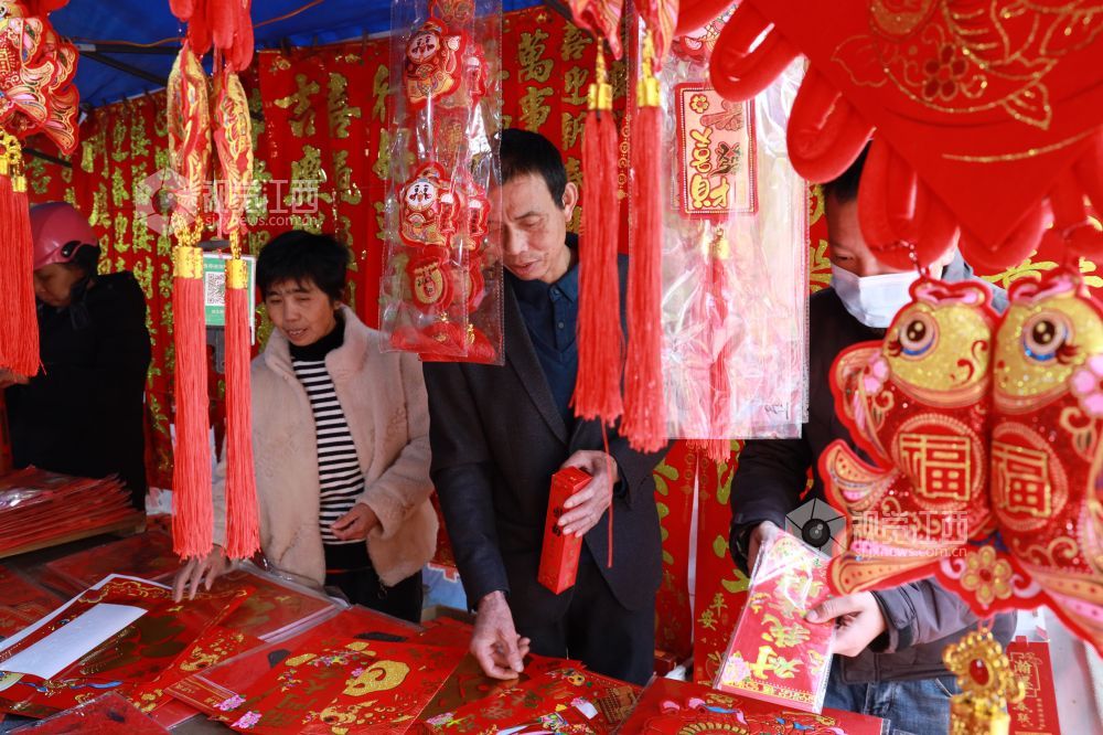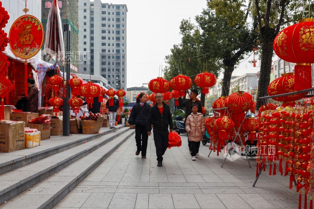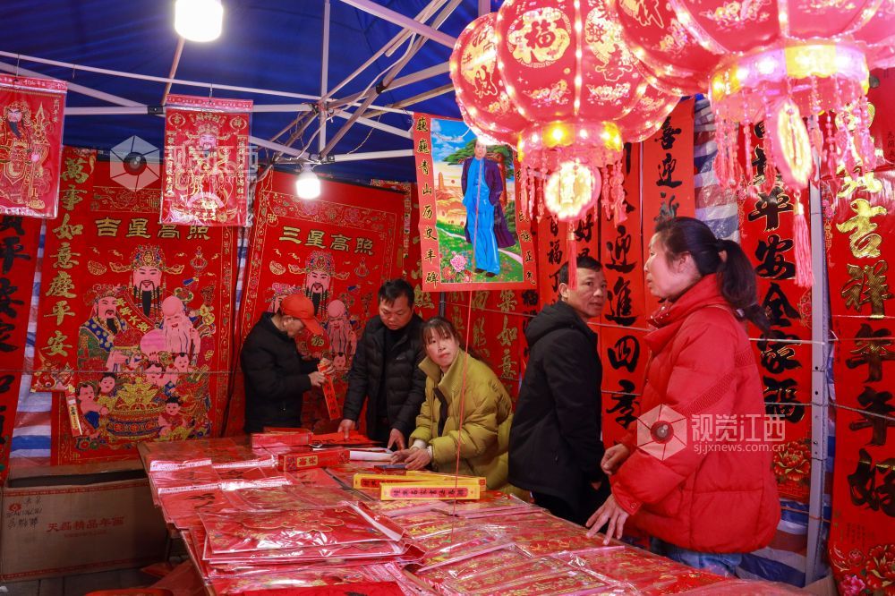 2025年1月23日,春节临近,江西省吉安市吉水县年货大集红红火火,市民正在选购新年饰品,喜迎新春。