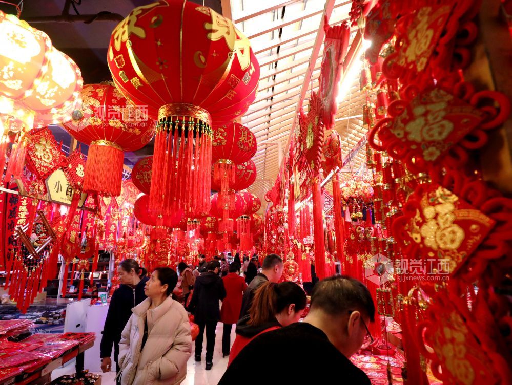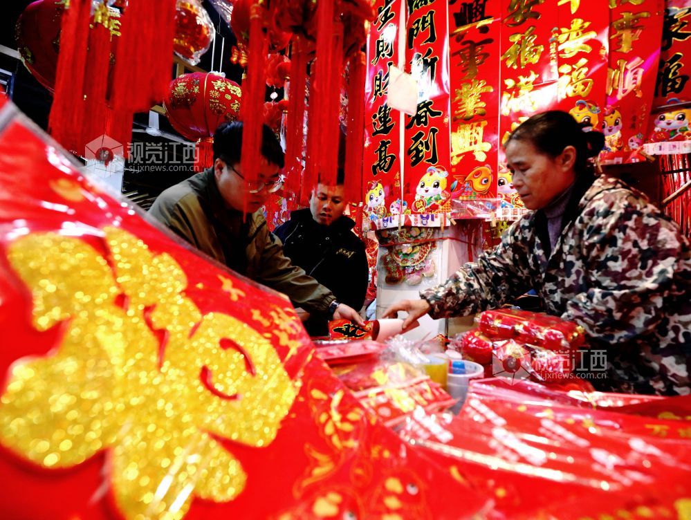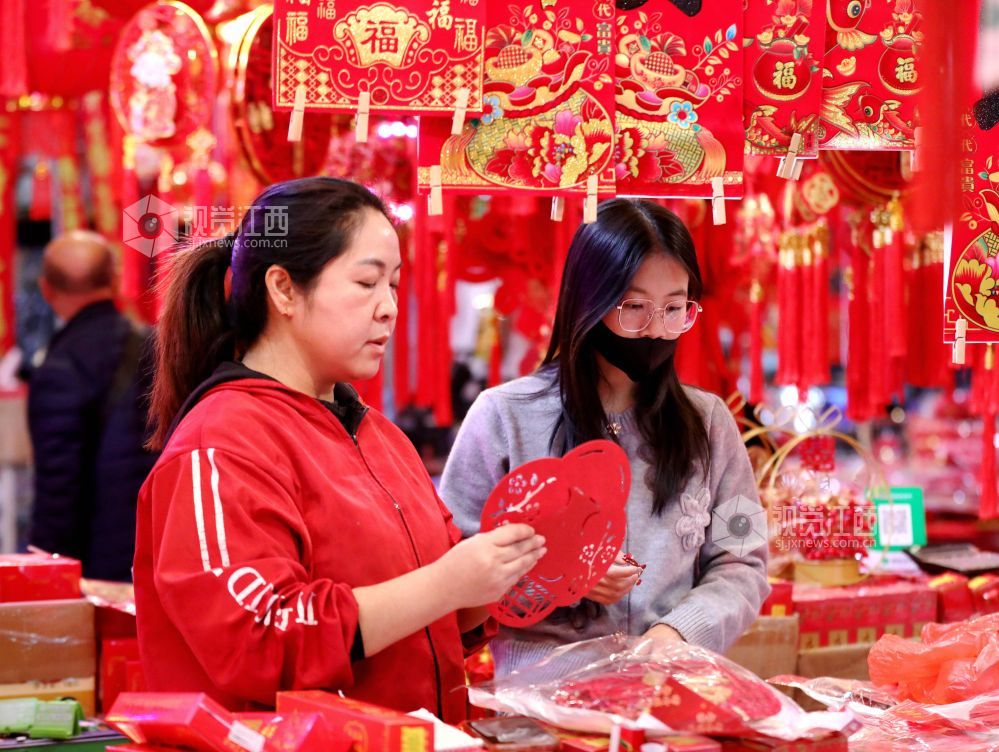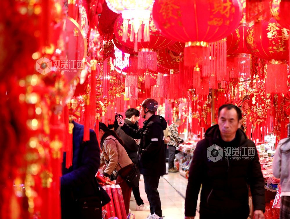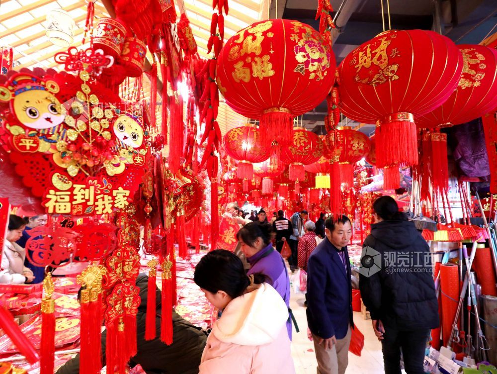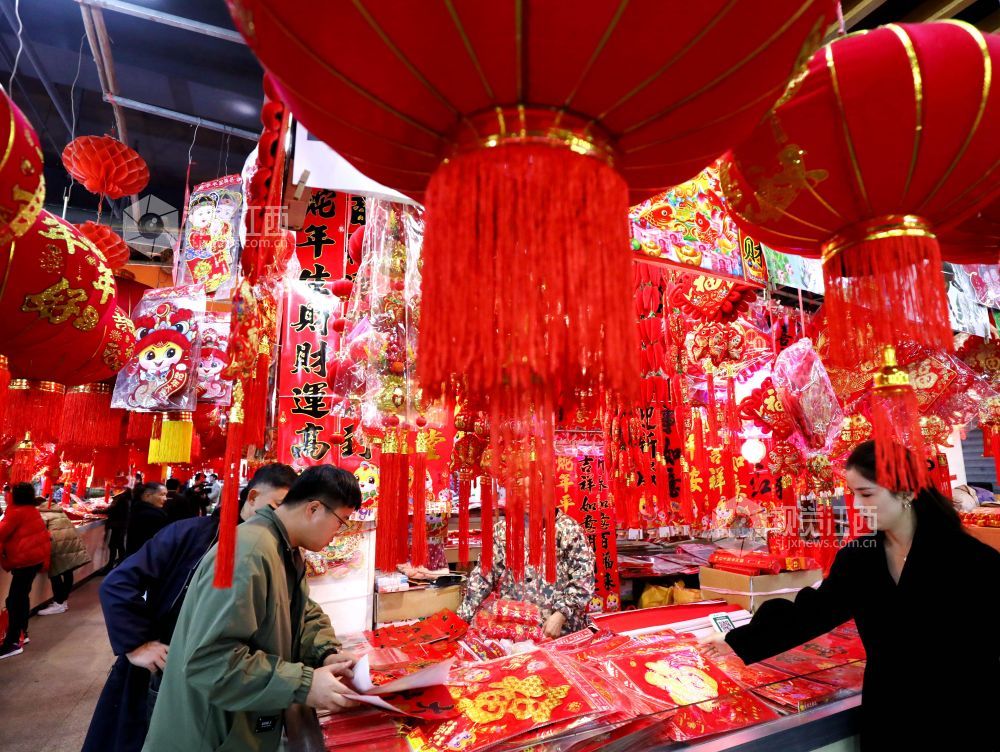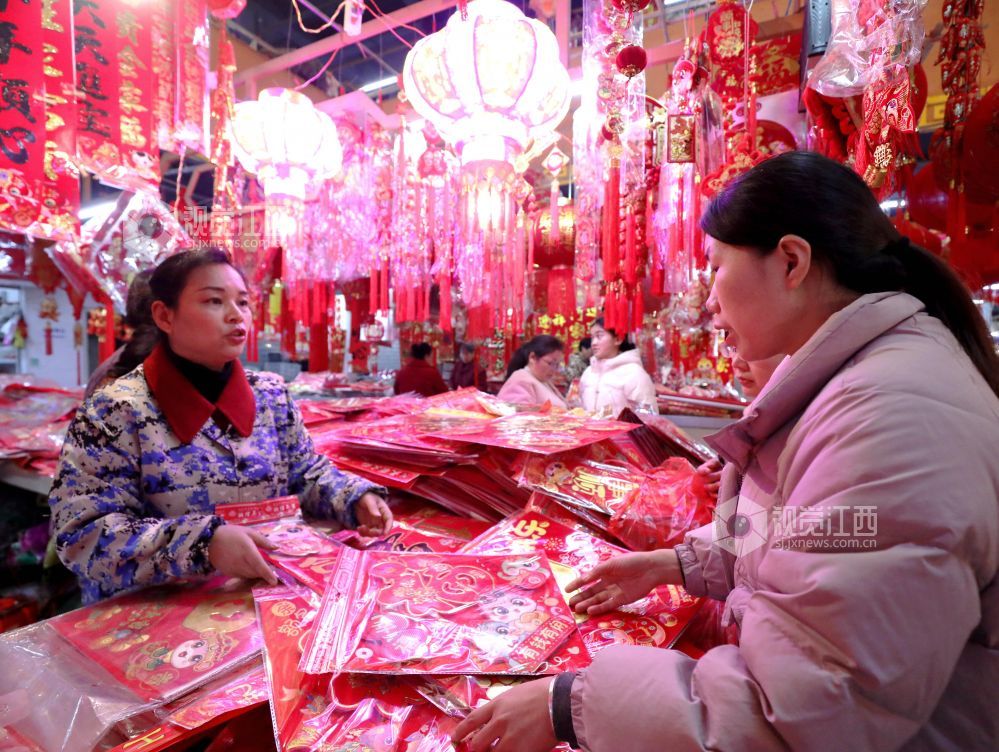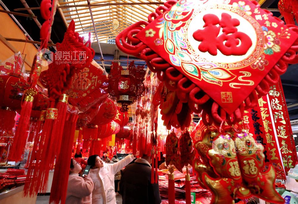 蛇年春节到,年味铺满集。2025年1月25日,江西省分宜县商城农贸市场处处洋溢着浓浓的年味,春联、“福”字、红灯笼、中国结等春节装饰品琳琅满目,货源充足,迎来销售高峰,众多市民到场选购,饰品经济红红火火。