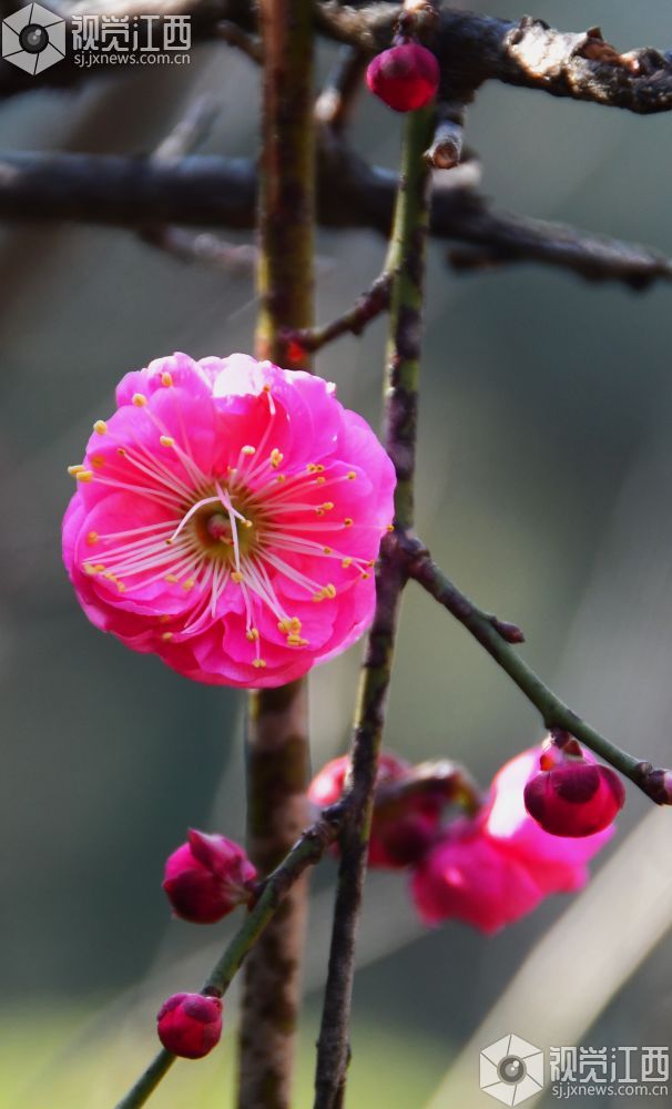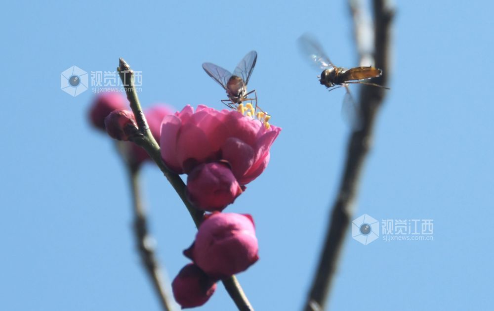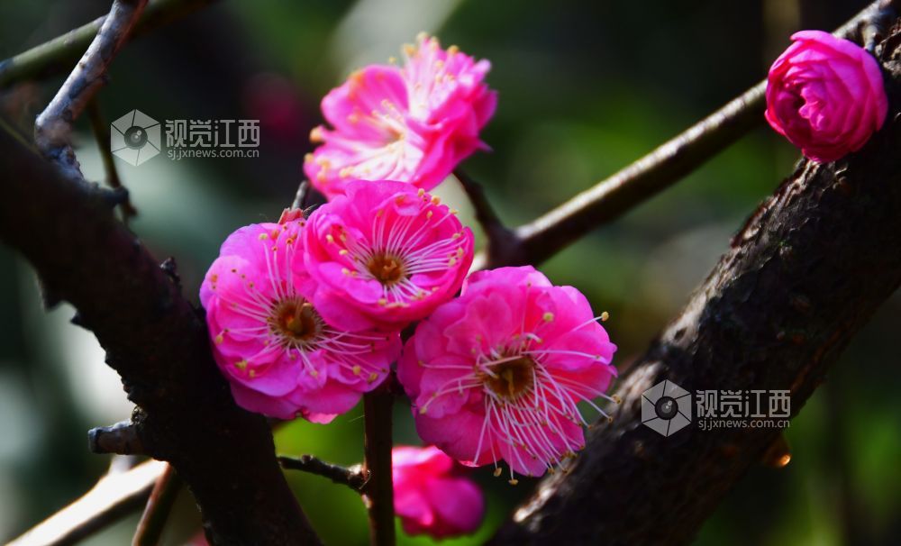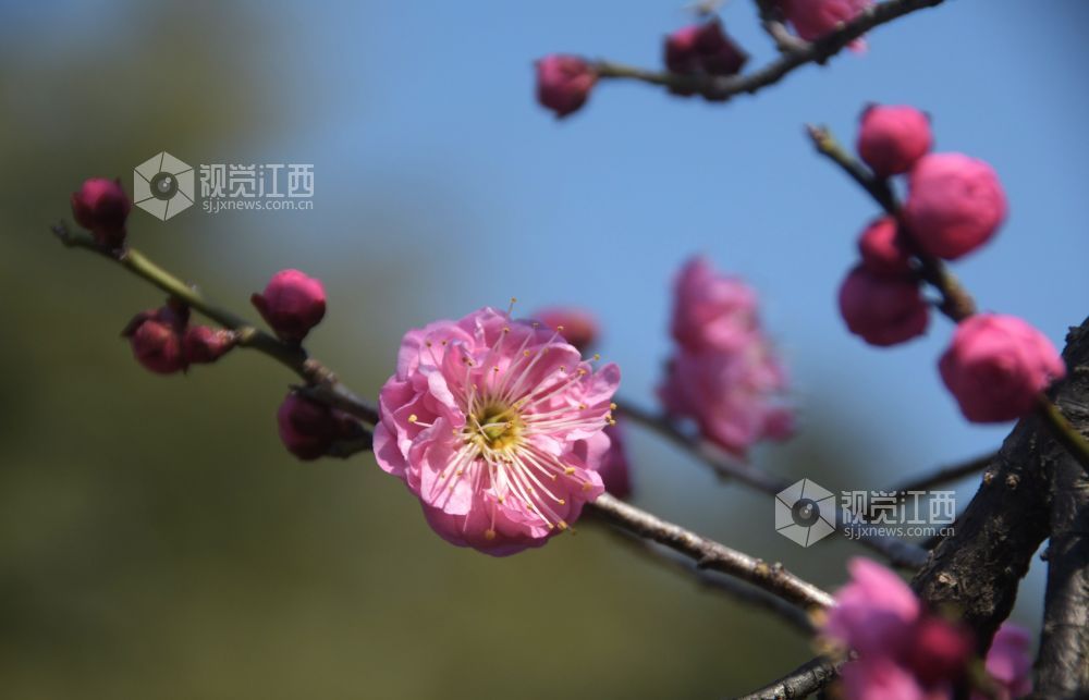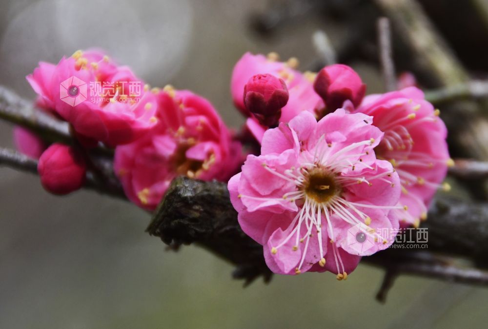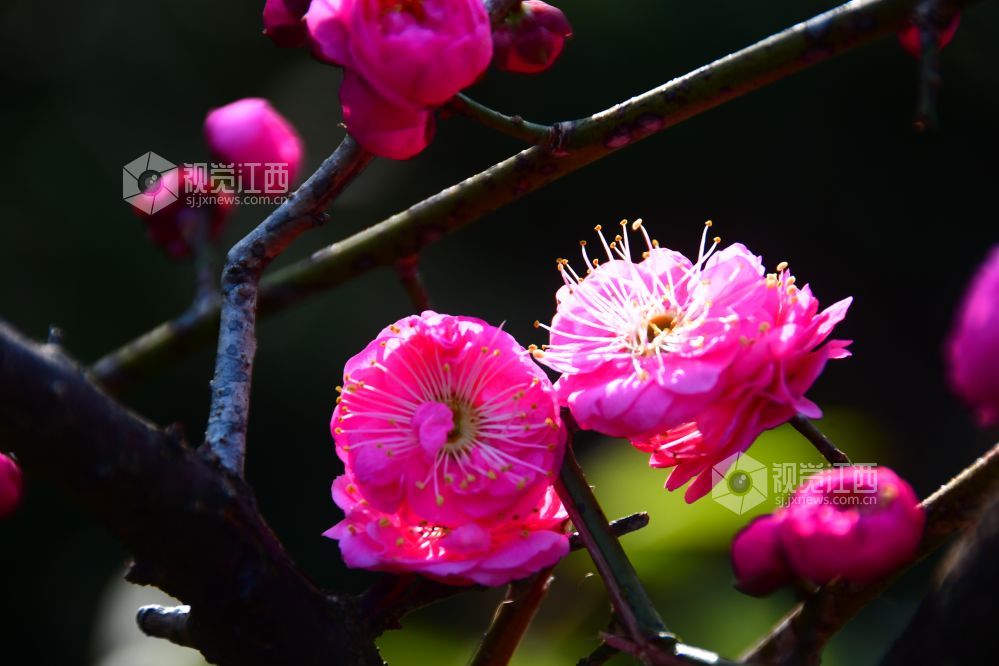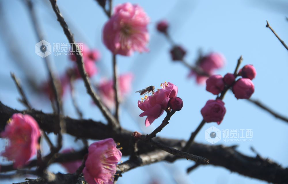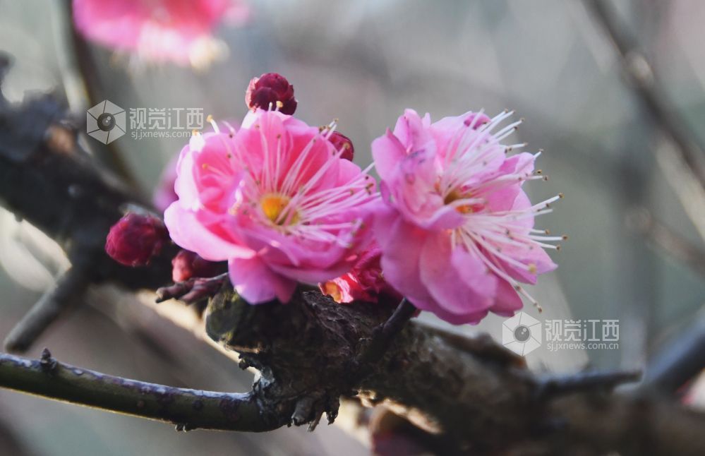 2025年1月29日,江西省鄱阳县各大公园内红梅花绽放,给新春佳节增添一道靓丽风景线。