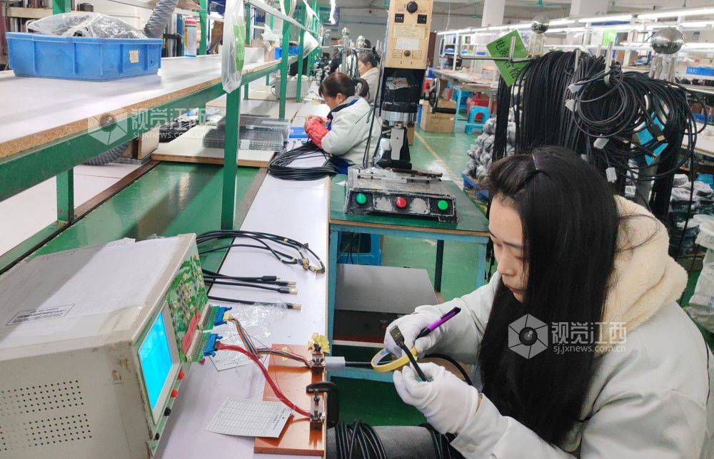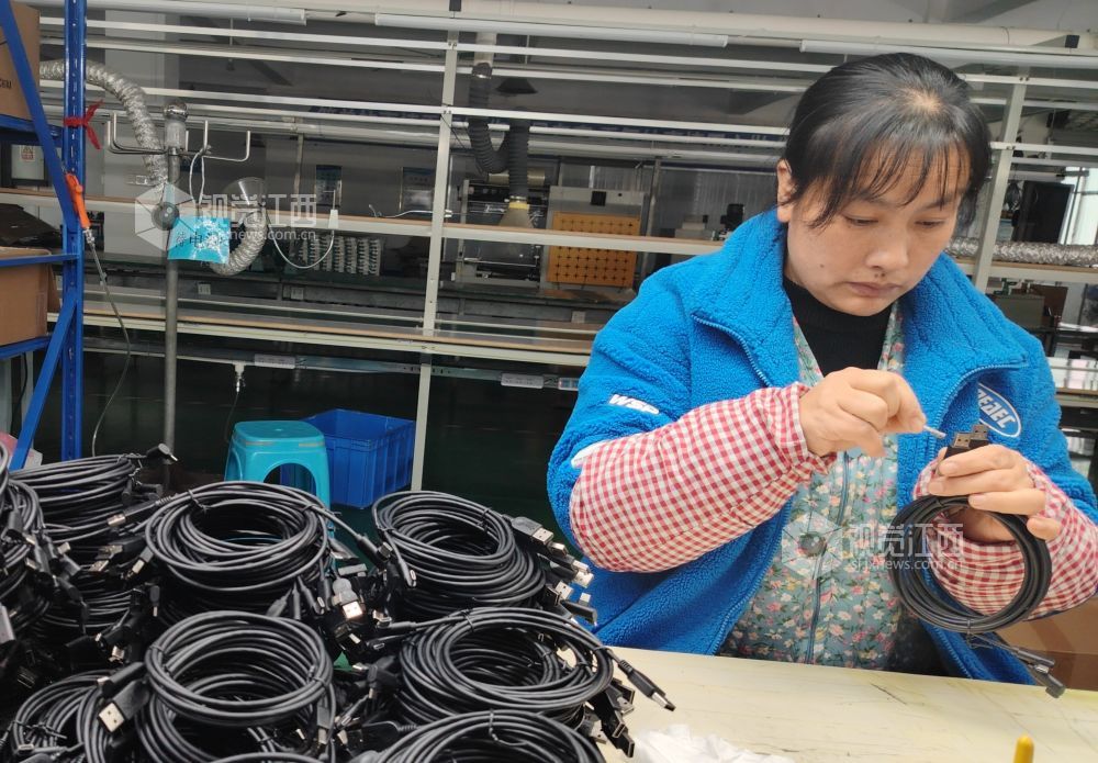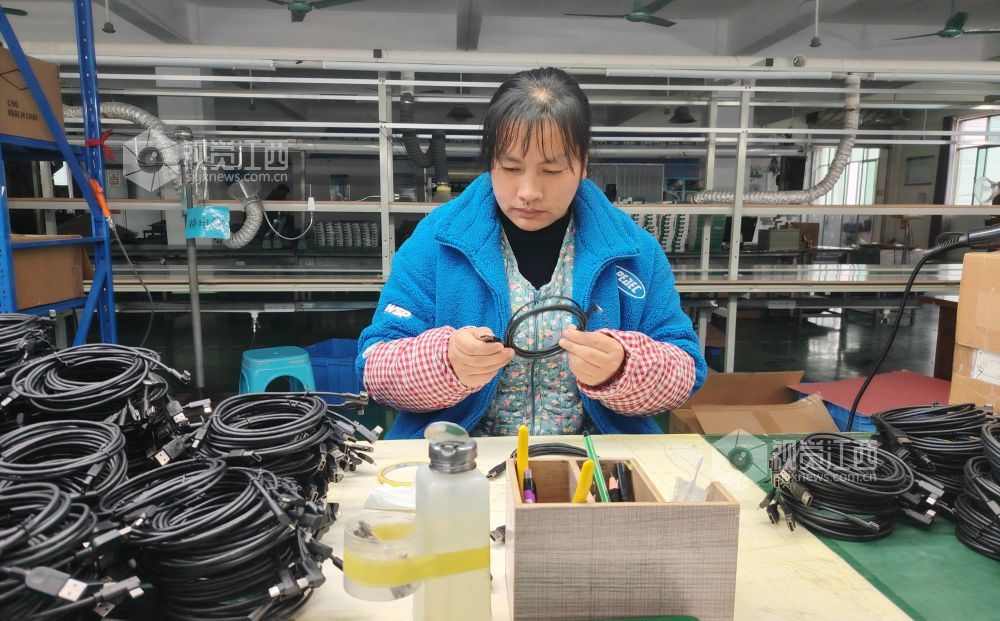 2月6日,在江西省永新县工业园区一科技公司的生产车间内,工人们正忙着赶制加工数据线。春节假期过后,该县各企业纷纷开工生产,全力以赴赶订单,力争实现“开门红”。